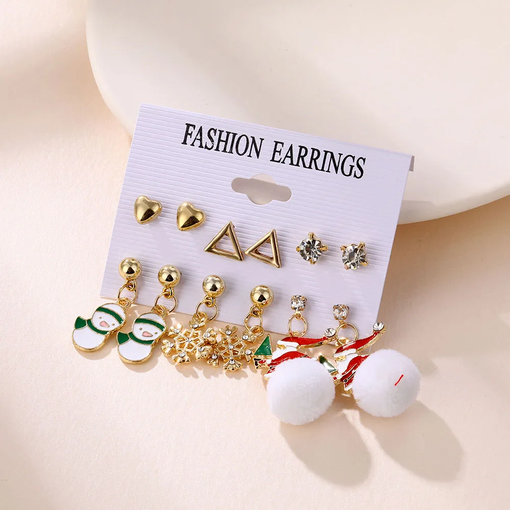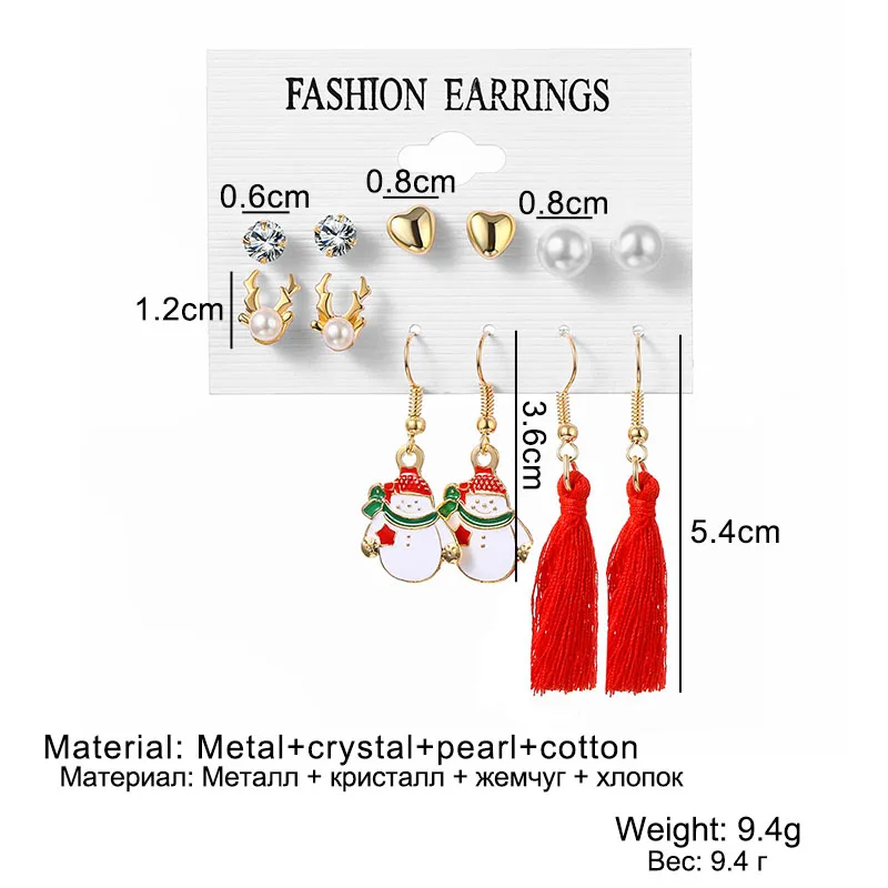 Winter Pearl Tassel Christmas Earring Set Fashion Snowflake Tree Geometric Alloy Earrings Female Child Christmas Jewelry серьги