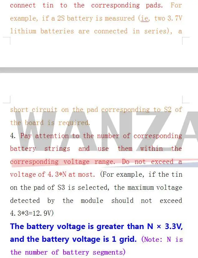 1.When battery voltage is over N*3.3V,it will illuminate 1 block electricity quantity
