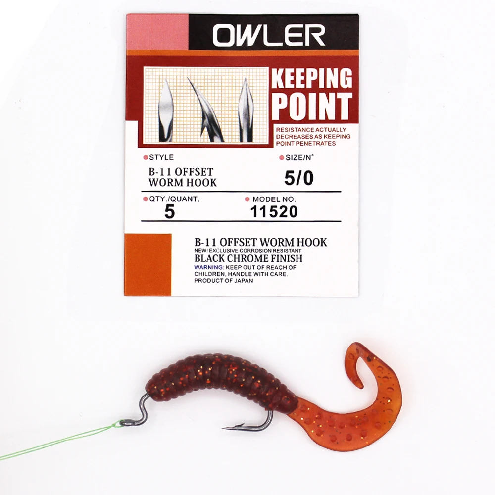 1 pack 5/0#-6# B-11 Offset Worm Hook Fishing Hook 9 Sizes Crank Worm Sharp Hook Fishhook Strength owner