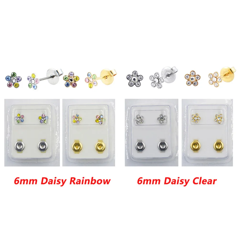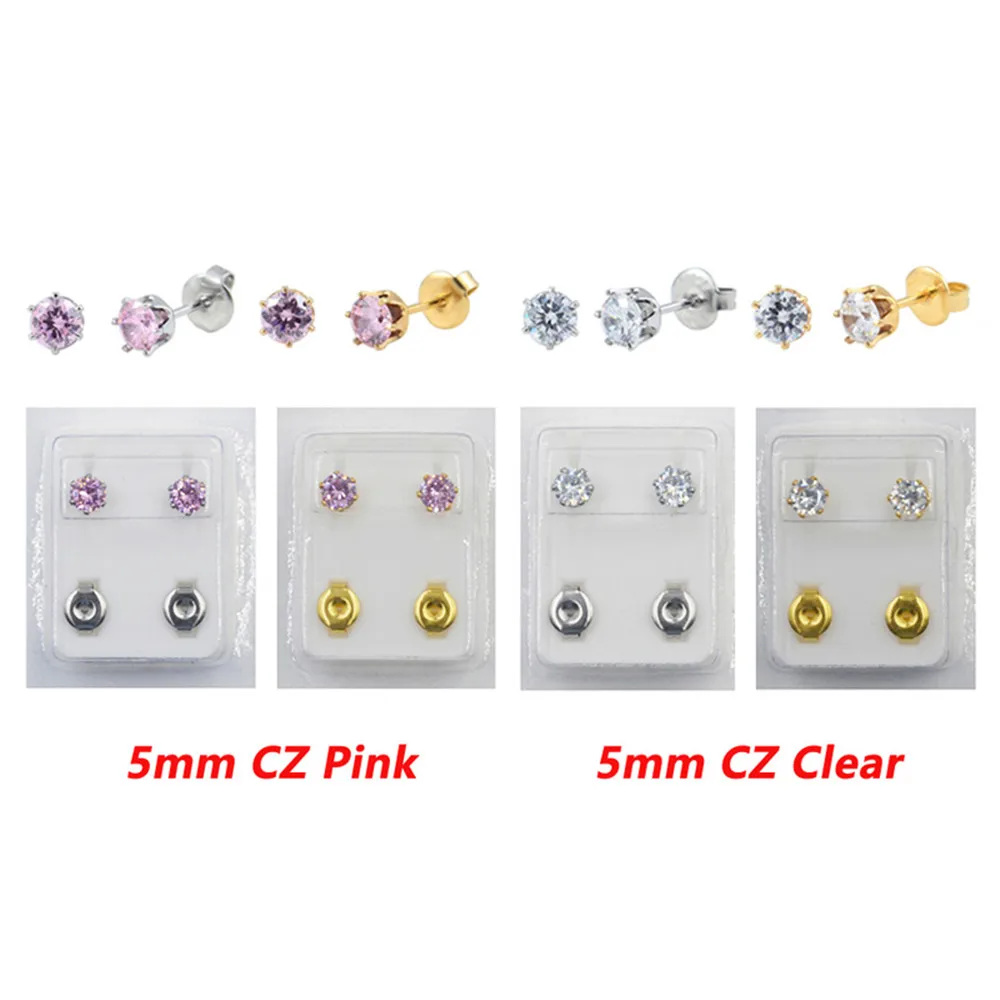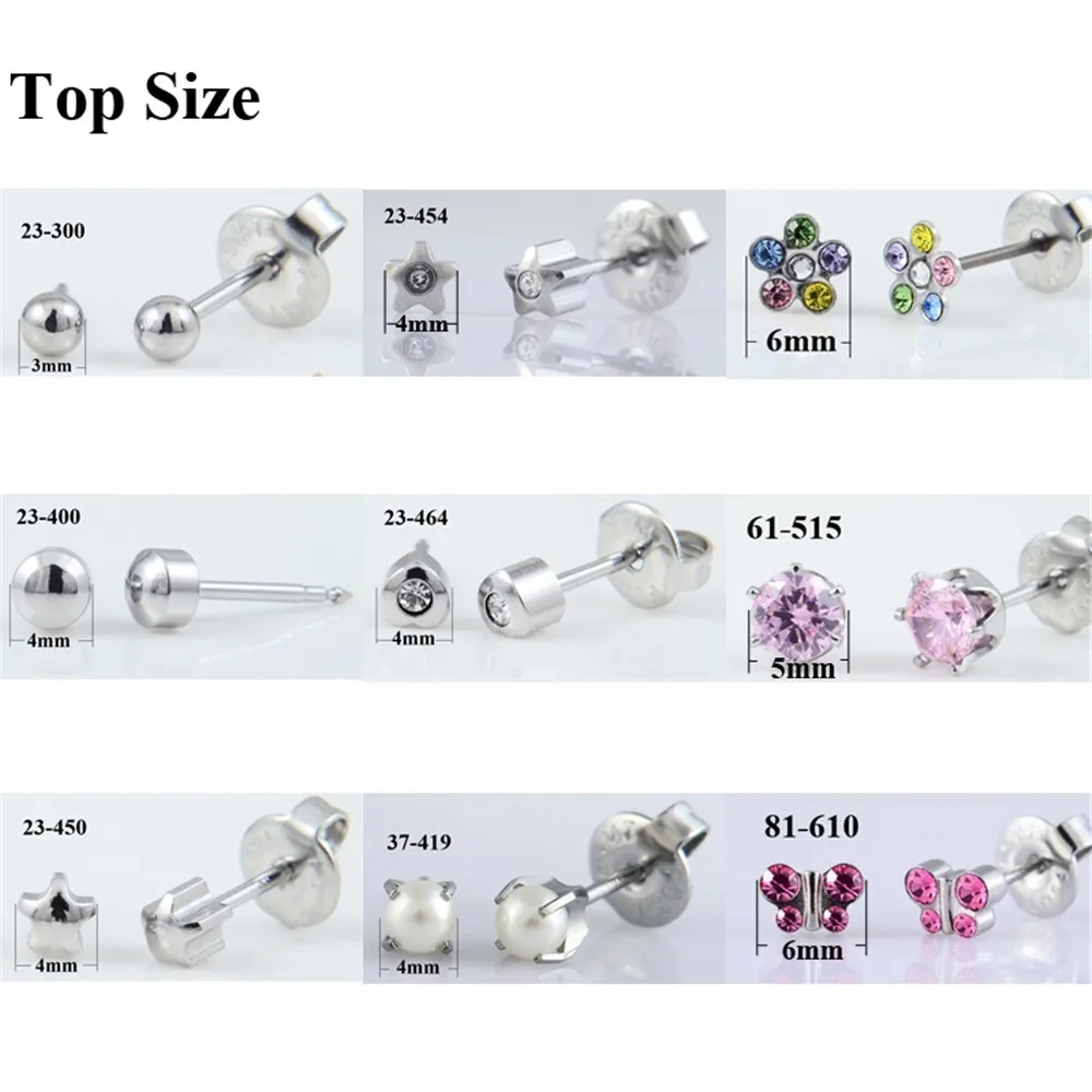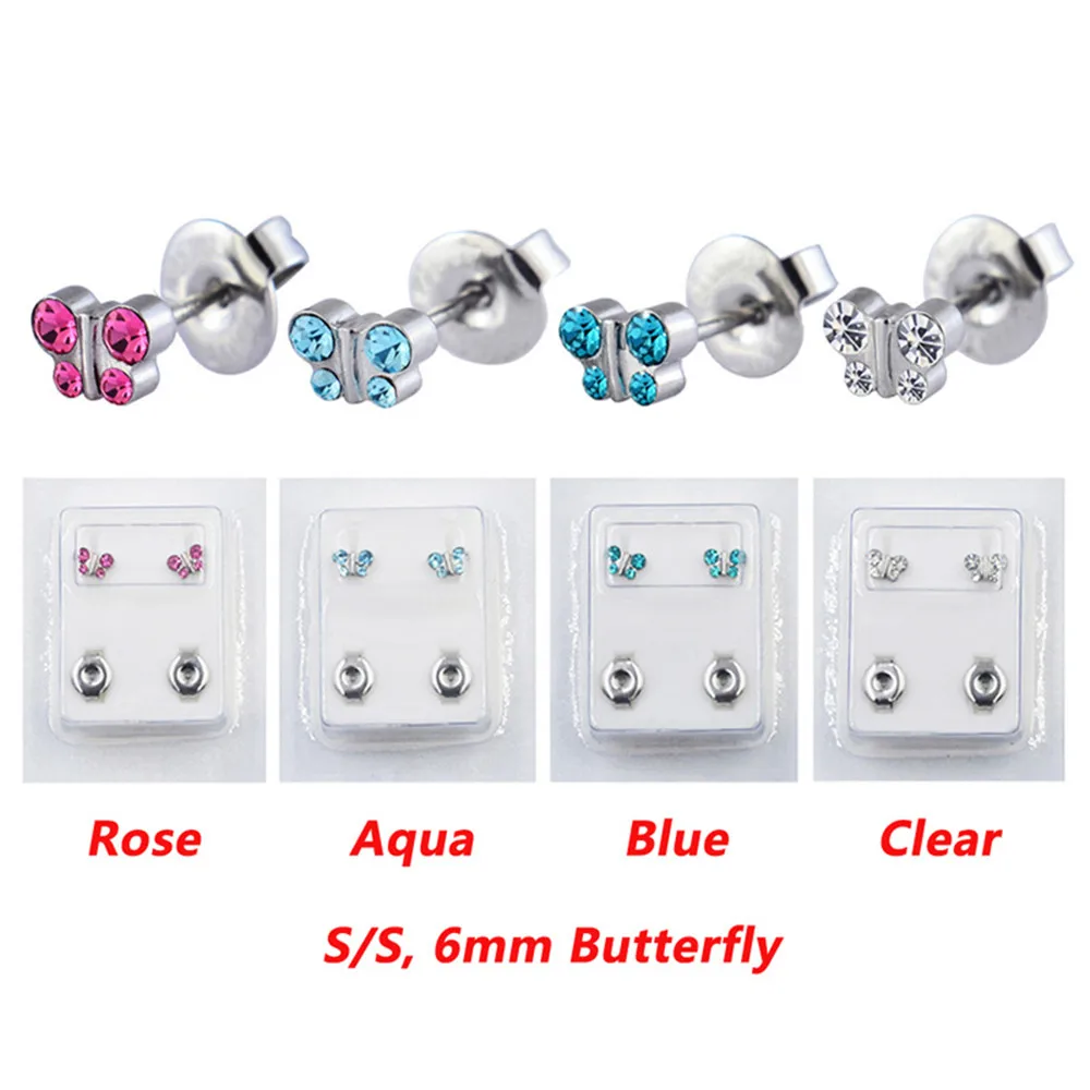 1 Pair Surgical Steel Ear Studs CZ Ball Heart Star Flower Crown Butterfly Sterilized Packaged Earrings Women Baby Gifts Jewelry