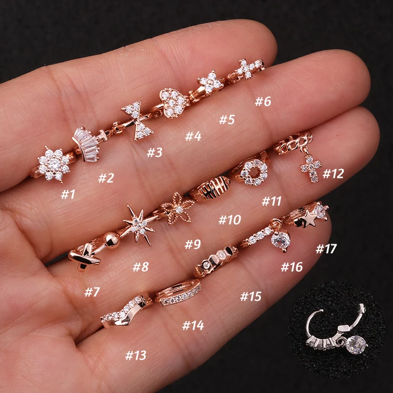1 Piece Surgical steel Tiny 5mm Color Tiny Hoop Earring Piercing Cz Tragus Daith Rook Cartilage Ear Piercing Jewelry