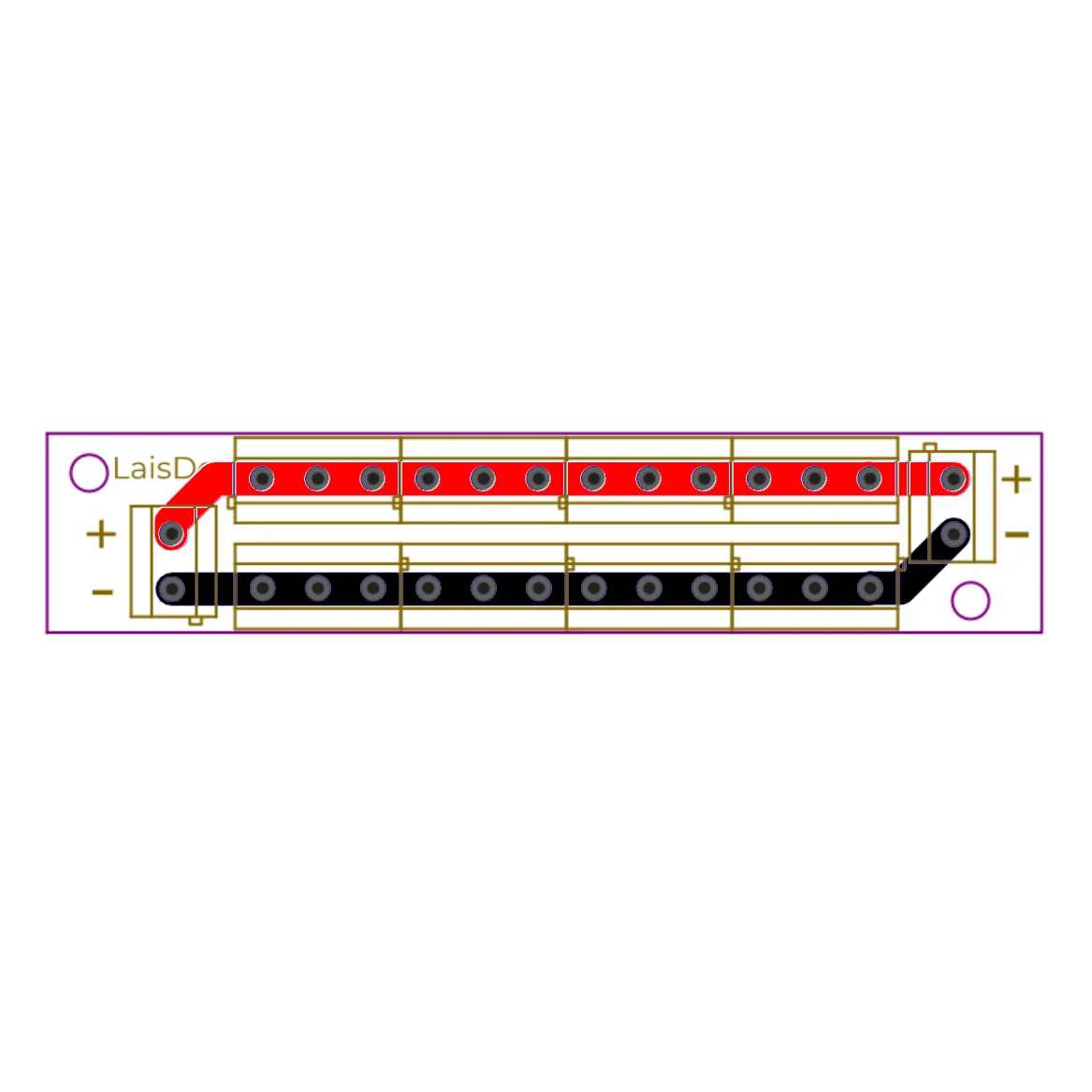 There are 2 connectors for the input of voltage and 2 x 13 connectors for the outputs on the distributor.