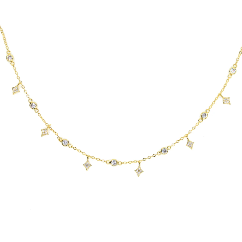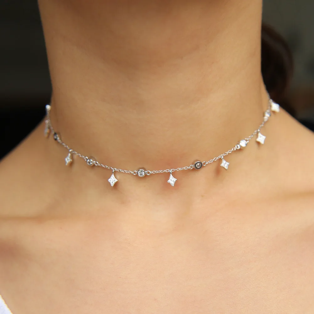 New arrive dainty delicate four star lucky girl chain cz star charm 100% 925 sterling silver choker chain silver necklace
