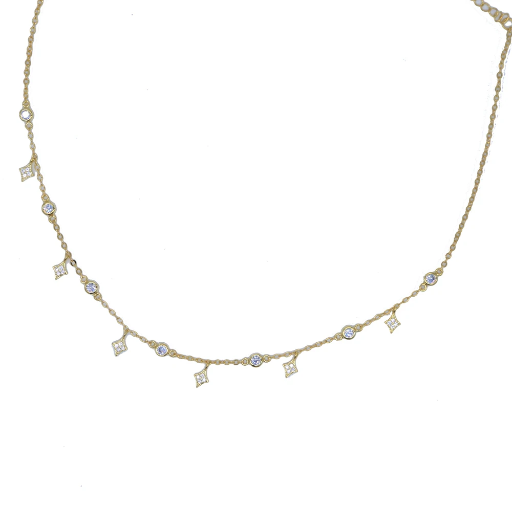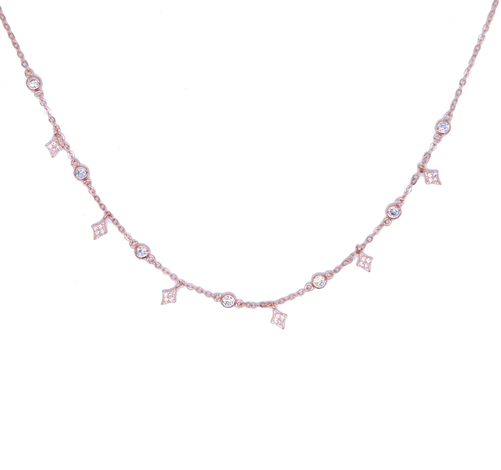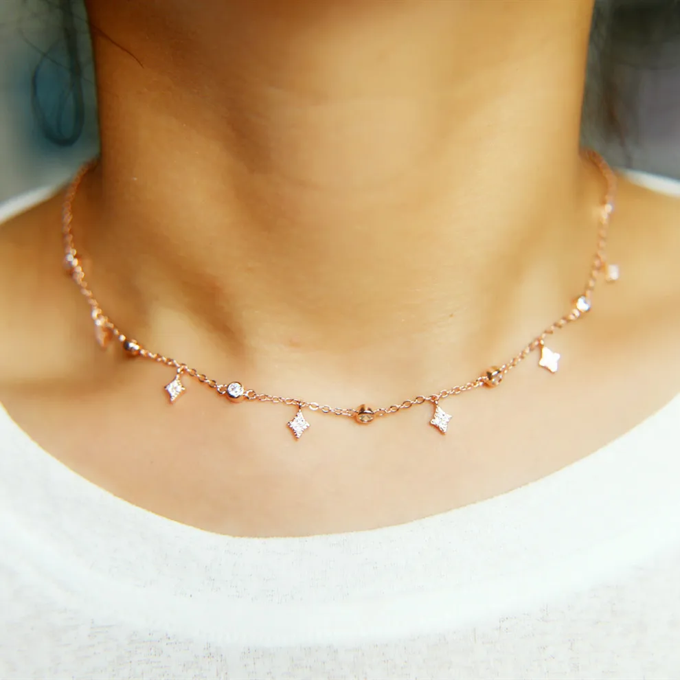 100% 925 sterling silver cz paved station chian with tiny star charm women necklace with 3 color 33+7cm elegance choker jewelry