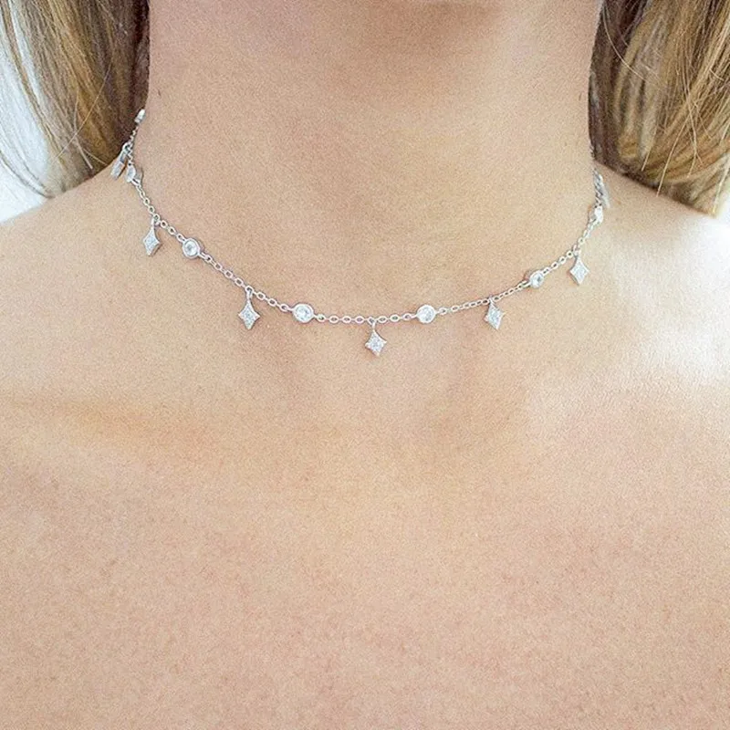 2018 Simple 925 sterling silver Chain Choker Necklace star charm Chocker Necklaces For Women collar collier ras du cou