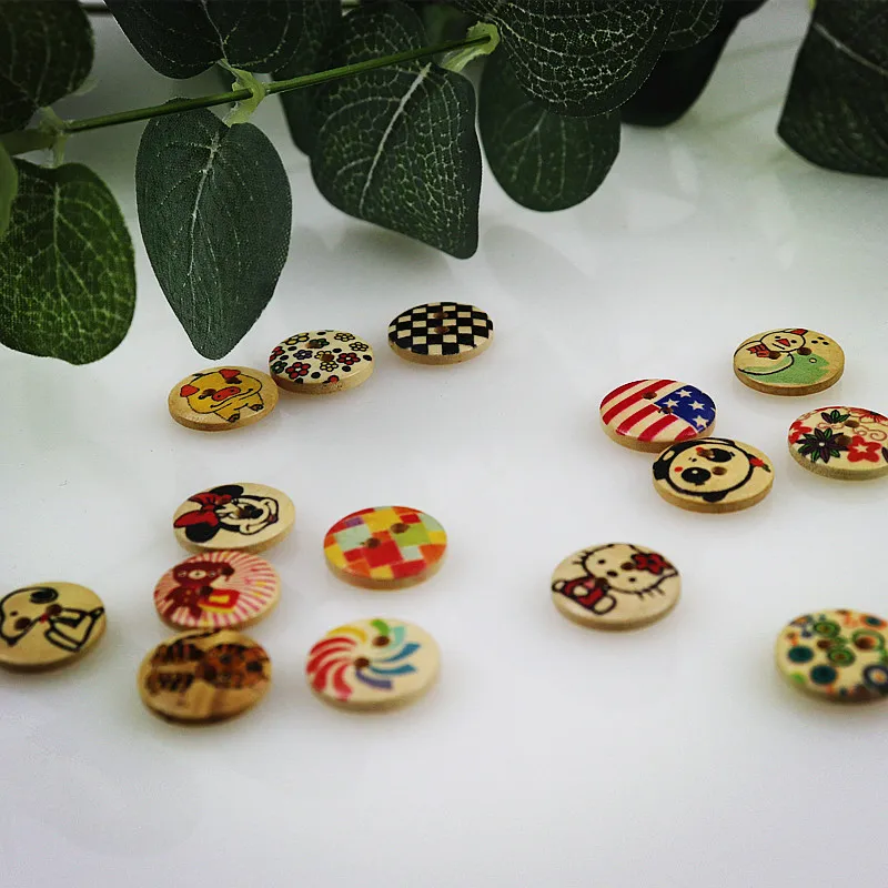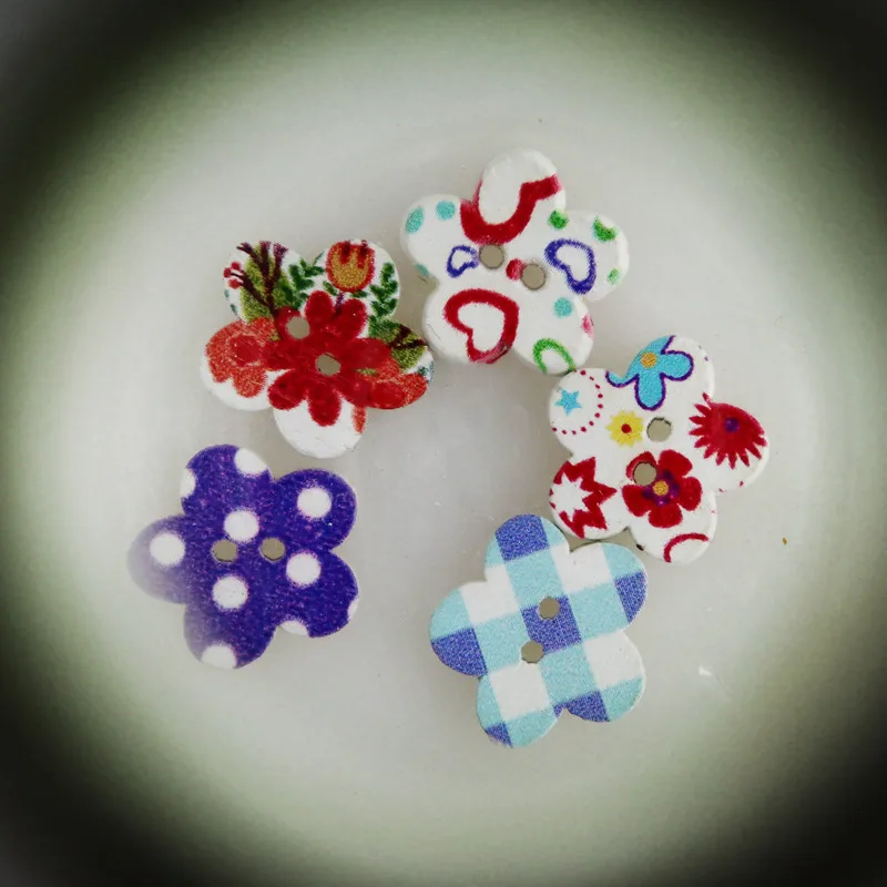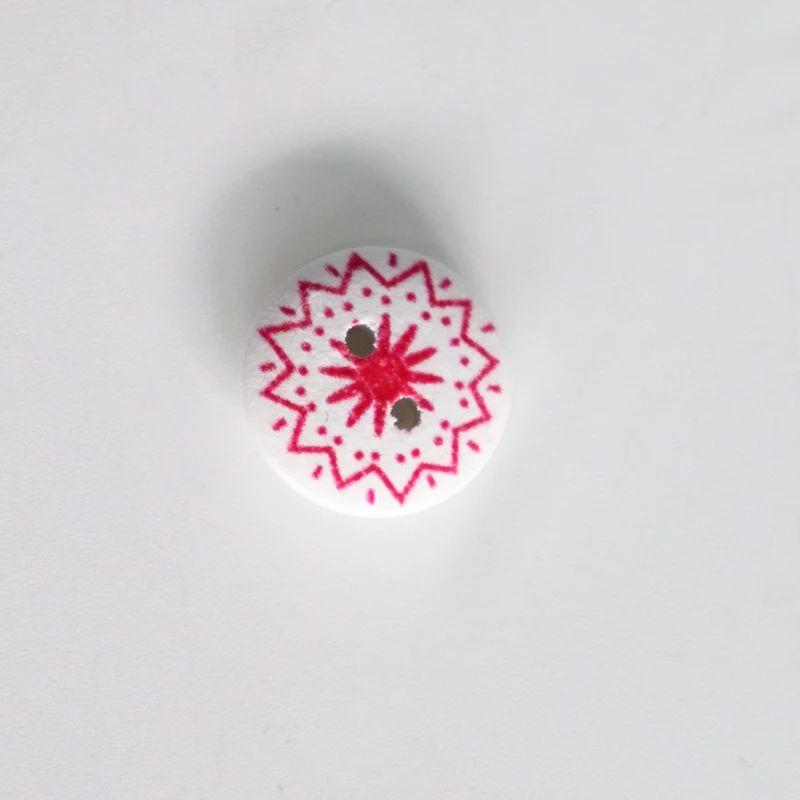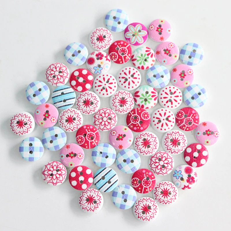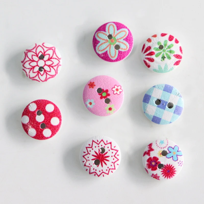 Pink Printed Wooden Button Mixed Colorful 15 mm 2 hole Flower Natural Sewing Buttons for Scrapbooking Hand Making Clothes Accessories