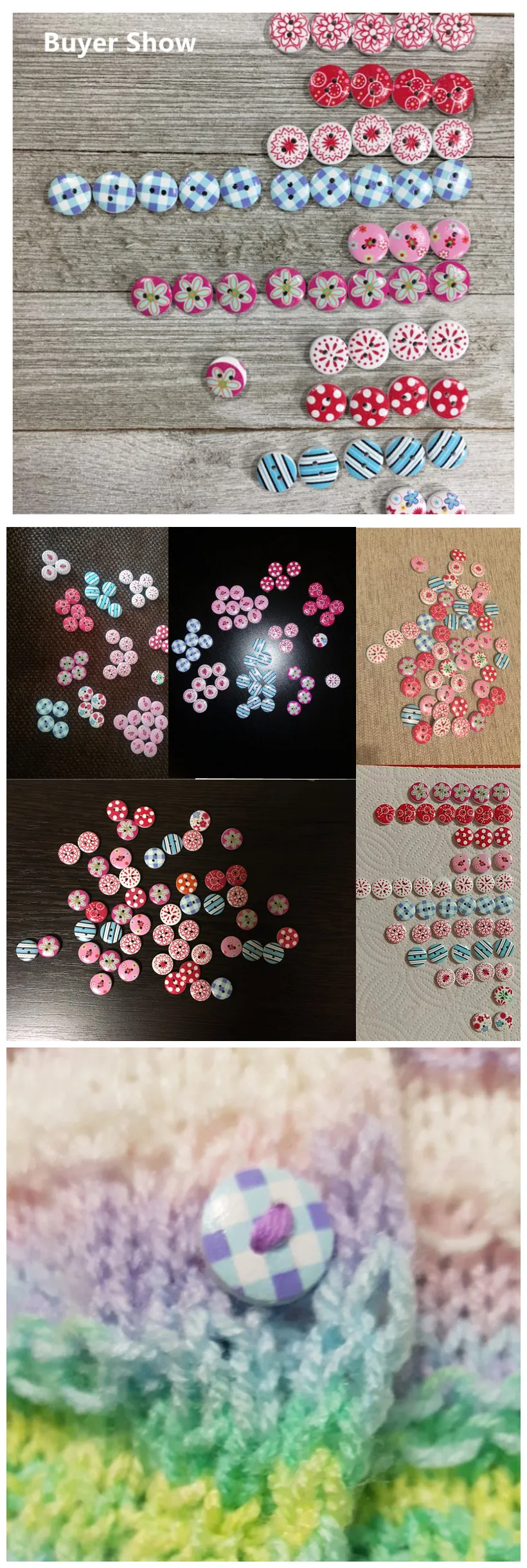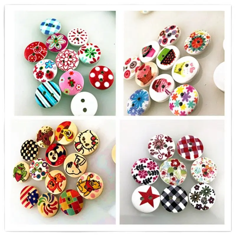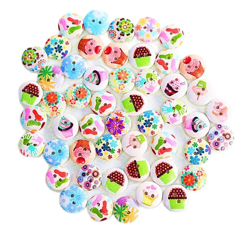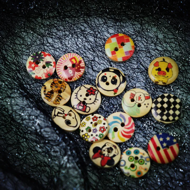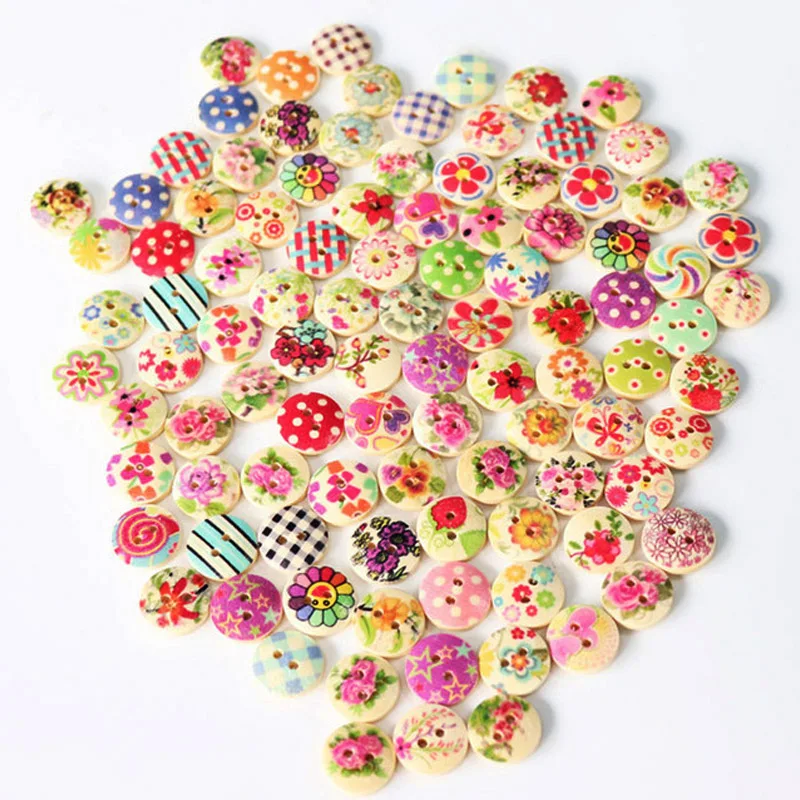 Pink Printed Wooden Button Mixed Colorful 15 mm 2 hole Flower Natural Sewing Buttons for Scrapbooking Hand Making Clothes Accessories