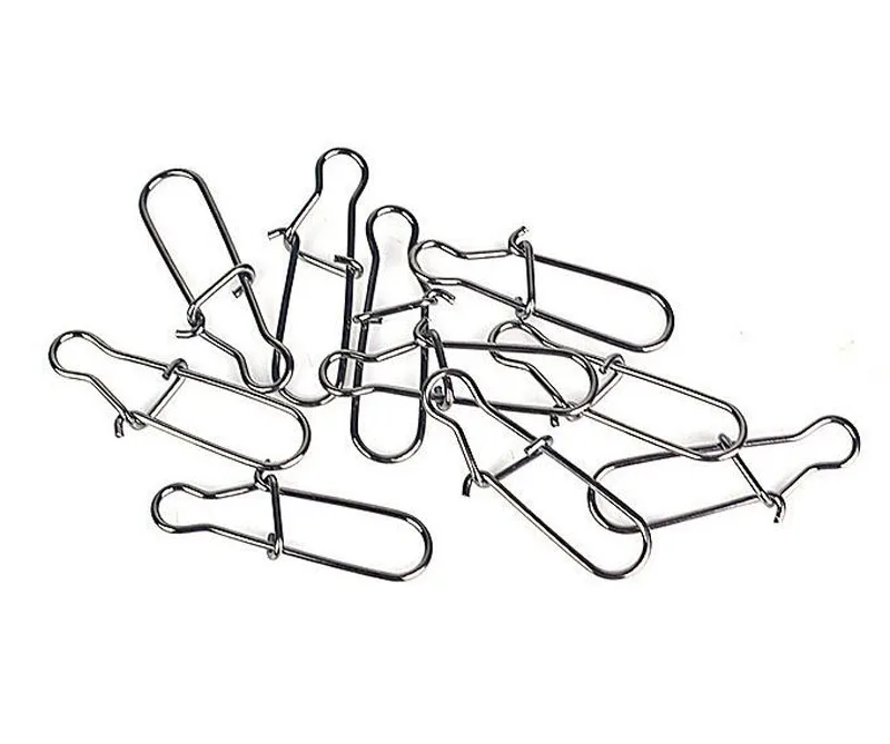 100Pcs Fishing Safety Snaps Fishing Bait Connector Stainless Steel Hook Lock Snap Swivels Solid Rings