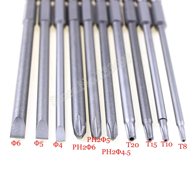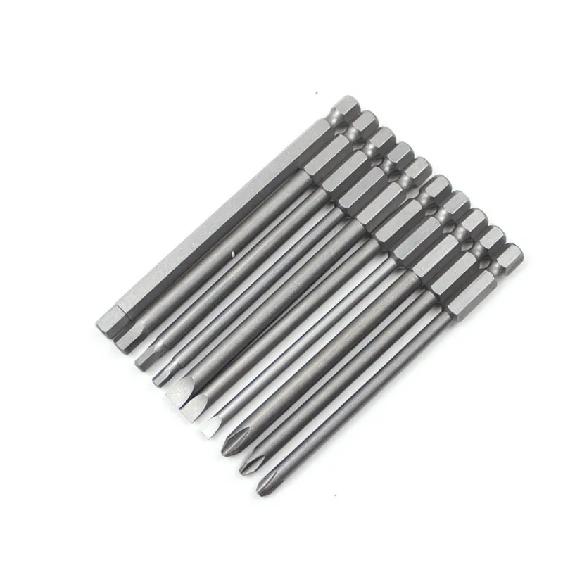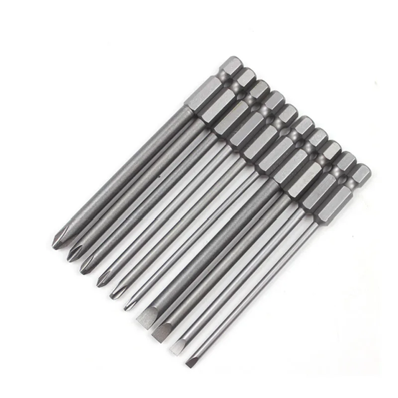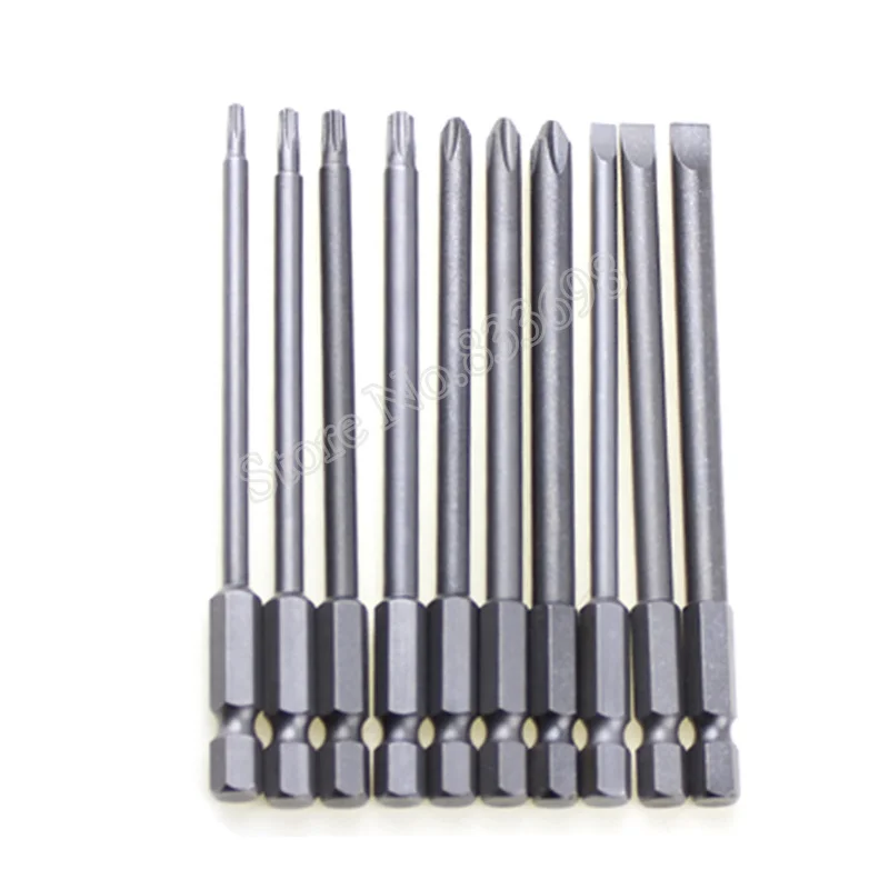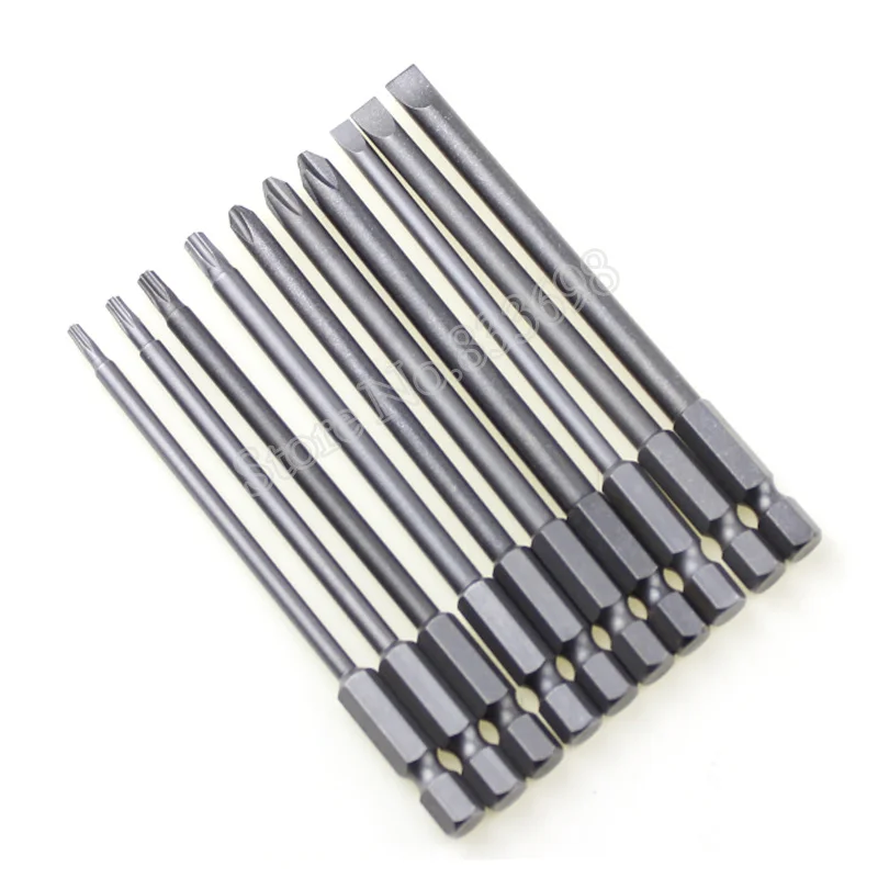 10Pcs/Set Magnetic Torx Screwdriver Bit+Slotted Screwdrive Head+PH2 Phillips Screwdriver Hex Shank 1/4″ Driver Bits Tools 100mm