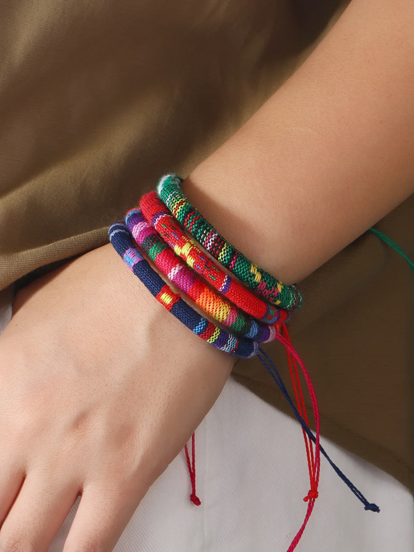 Trendy Ethnic Woven Fabric Bracelet Men Women Magnet Buckle Handmade Bilayer Grade A Rope Wristband Couple Party Accessories