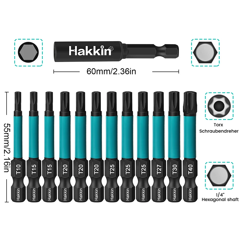 2.Magnetizable Torx head screwdriver bits can be easily keep screws stuck to them,can improve your work efficiency; Each edge of the torx bit can be accurately locked screws, no damage to the screw and the screwdriver head.