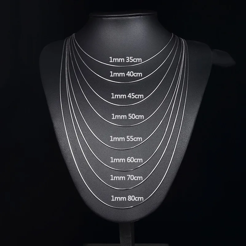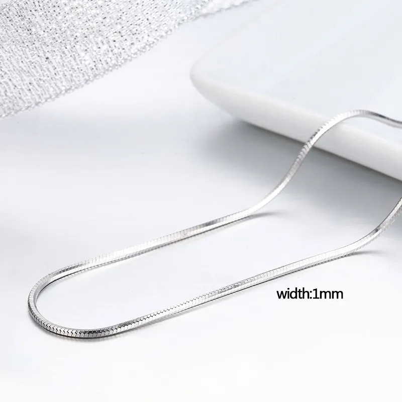 14″-32″ 1mm Real 925 Sterling Silver Thin Snake Chain Necklace Women Kids Girls Children Men Jewelry Italy Colier Kolye Ketting