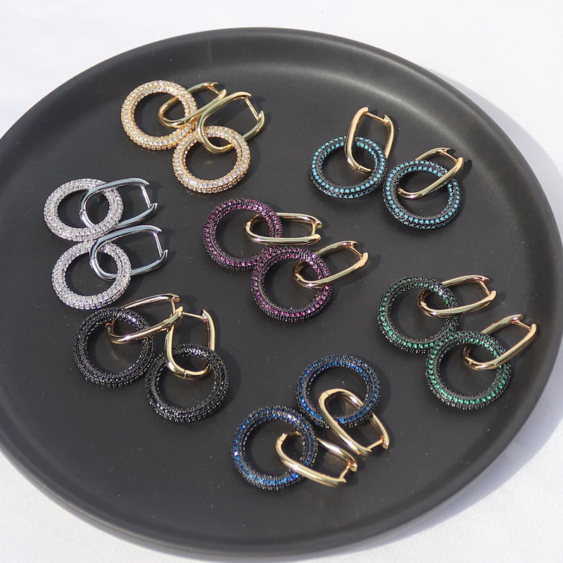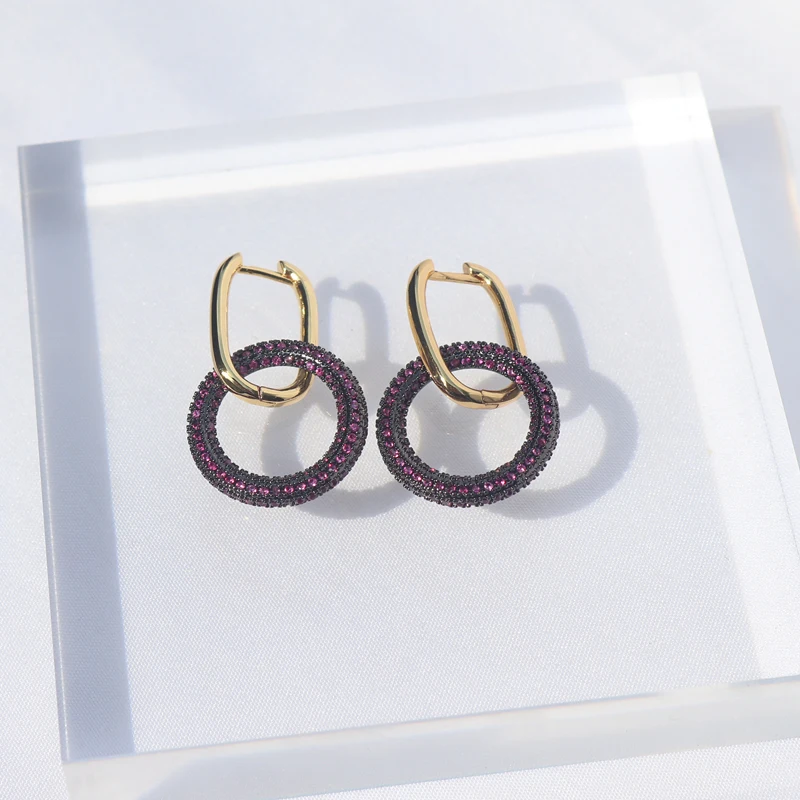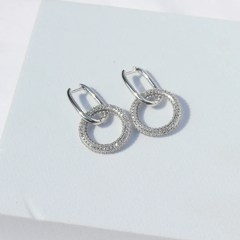 | Key word | Zircon Double Circle Cross Buckle Hoop Earrings |