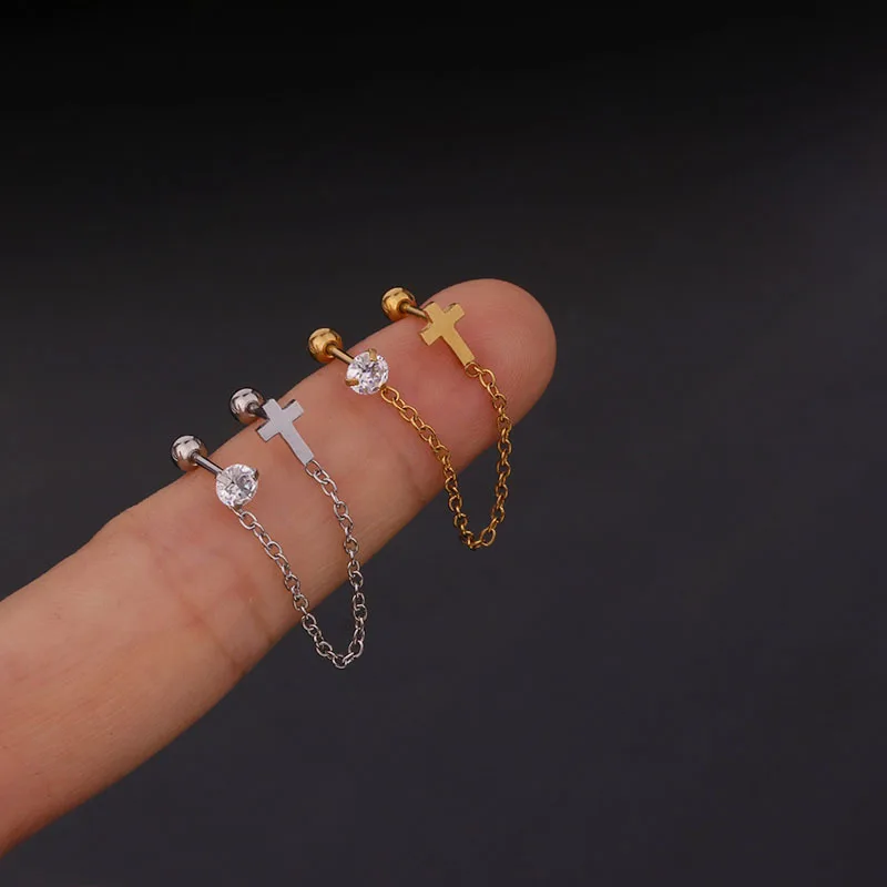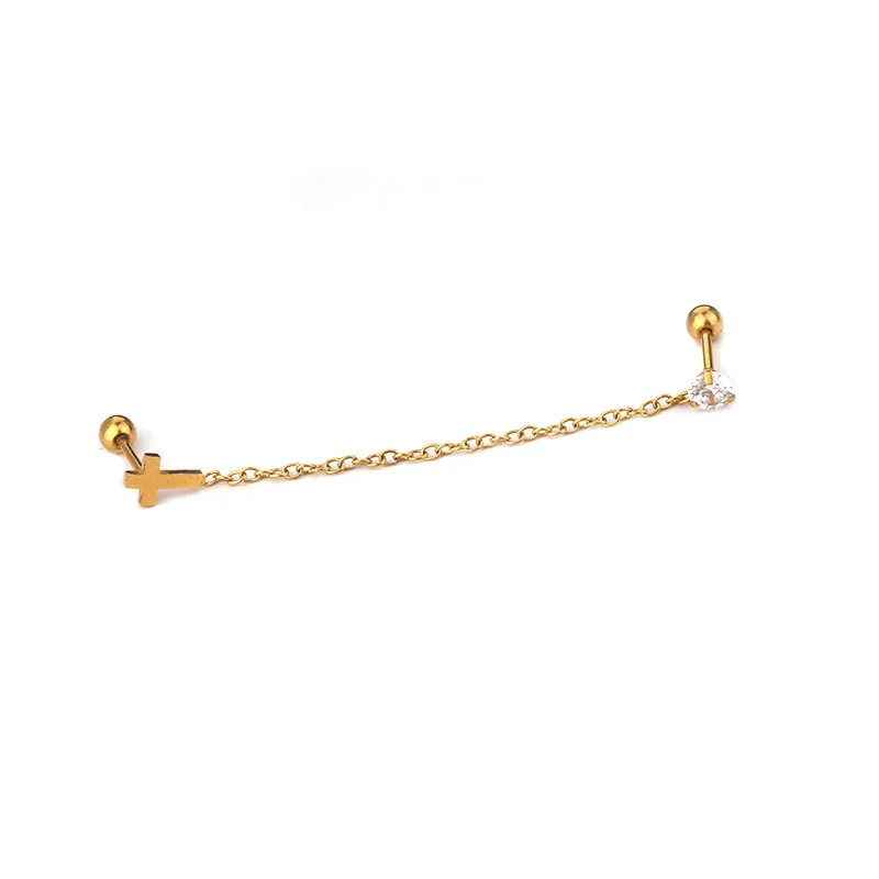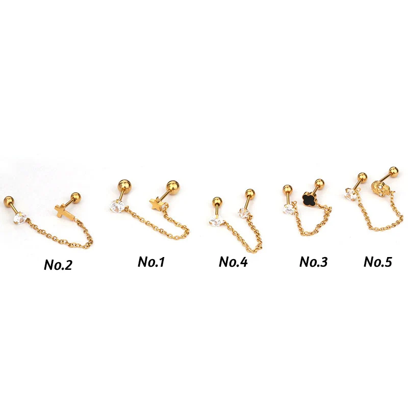 1Pc 1.2*6mm 5 Shape Zircon Gem Tassel Earrings Helix Piercing Tragus Piercing Oreja Nose Ring Ear Piercing Body Jewelry Women