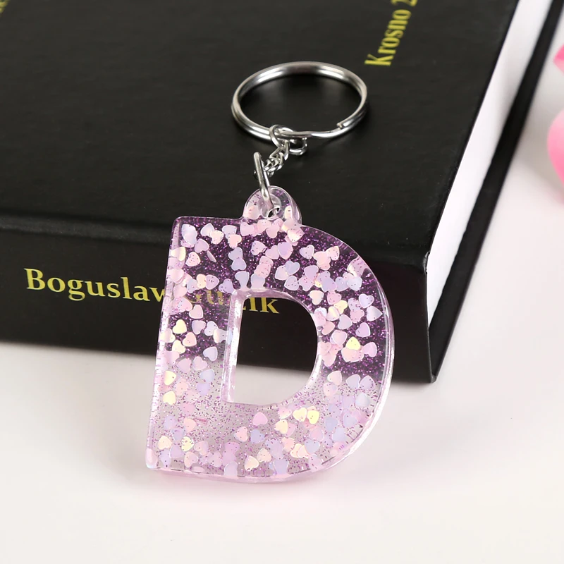 1PC KEYRING 26 English word English Letter Keychain glitter resin A TO Q handbag charms for woman
