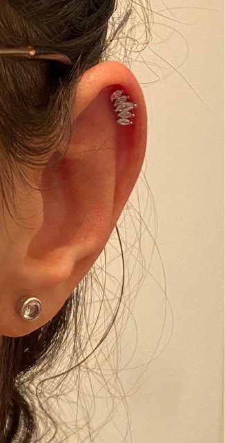 Very very beautiful product, I love!! By cons I do not know if it’s me but when I put it the rod was a little and I had trouble getting it in and it hurt me but otherwise be the jewelry is too much nice
