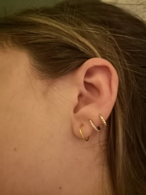 Very satisfied purchase, ear shines a lot and it’s right sizes for a pearcing, for a hole by lobo maybe is somewhat piccolino. Unique “flaw” Rod accessories earring is thick enough, you have to be very careful if you have a hole pearcing small.