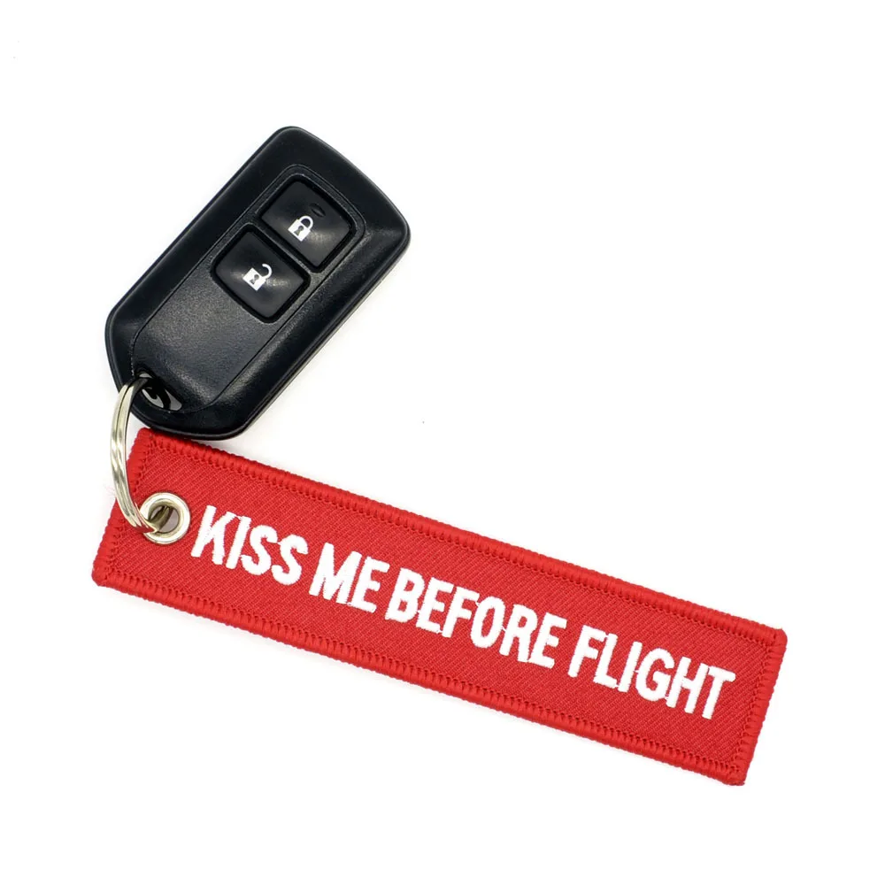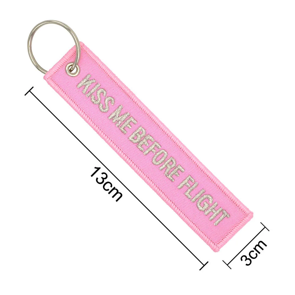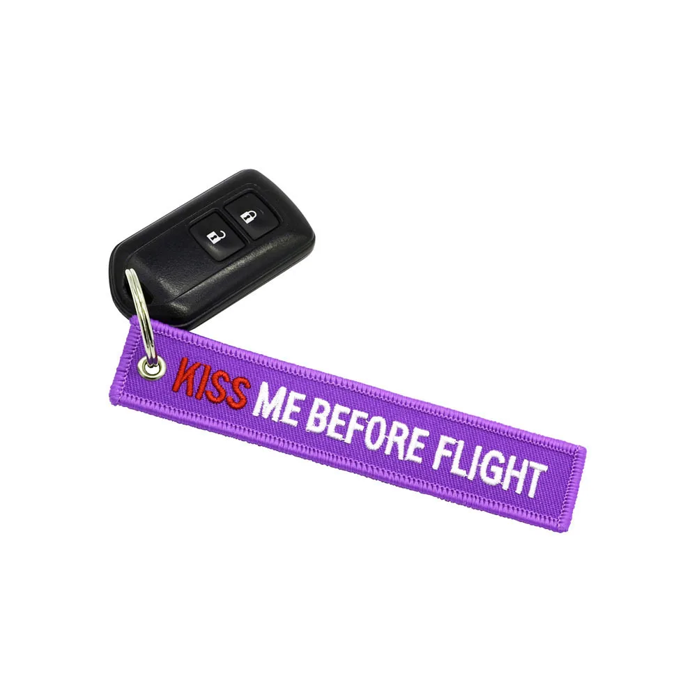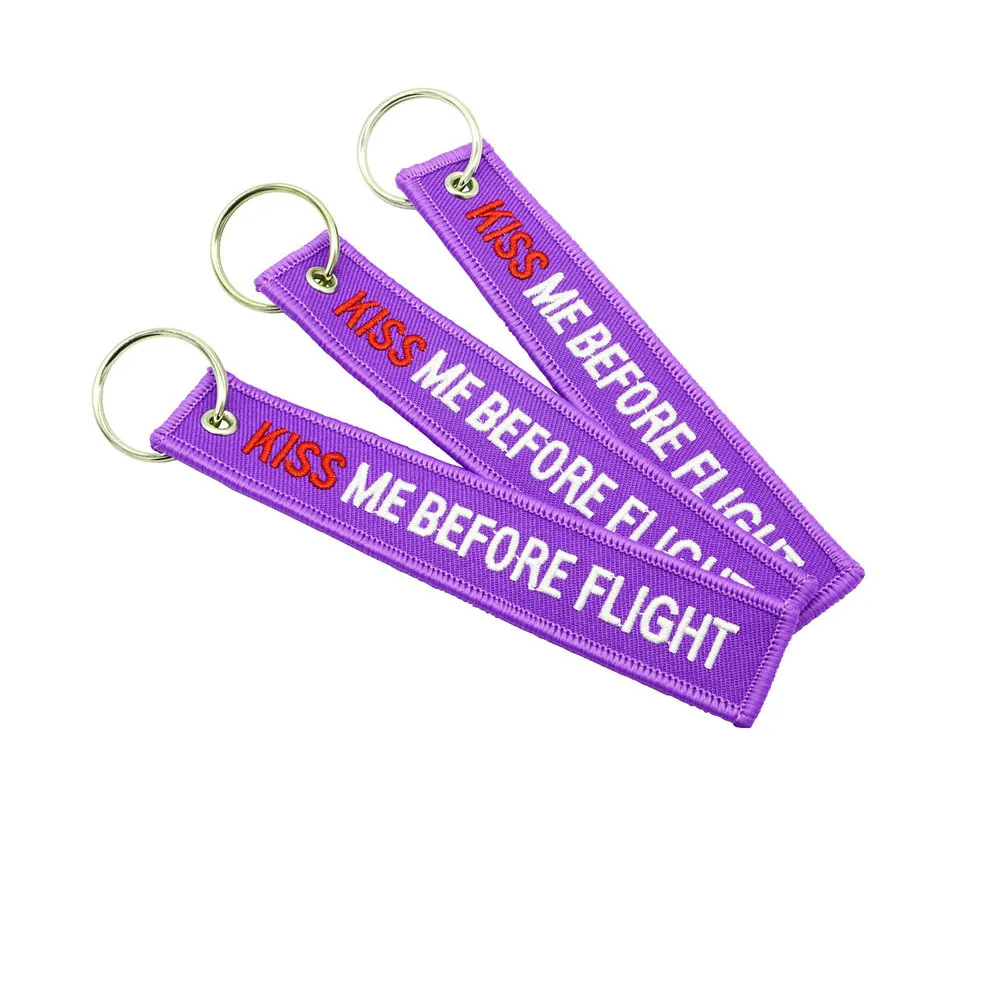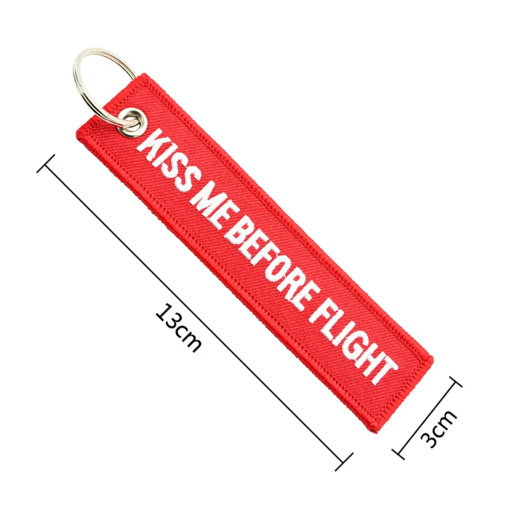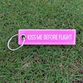 1piece Aviation gift KeyChain KISS ME BEFORE FLIGHT Key tag Duplex for motorcycle cars Key Chains Woven or Embroidery label
