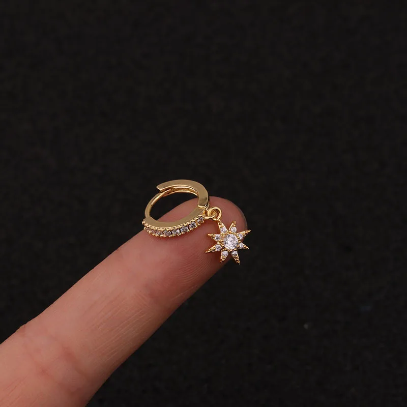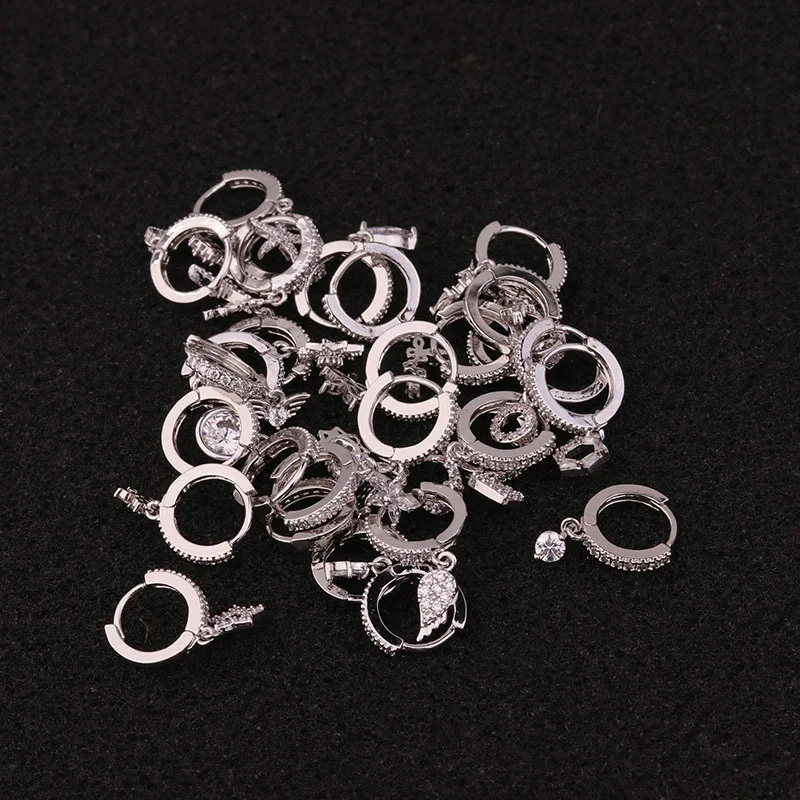 1Piece Zirconia Crystal Heart Stud Earrings for Women’s Earrings Crosses Ear Cuffs Steel Plate Sun Moon Star Earrings for Girls