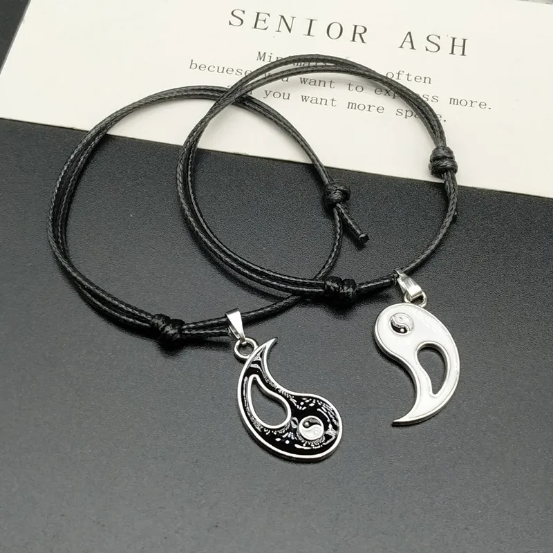 2 pcs/lots Couple Bracelet Yin Yang Chinese Style Vintage Bracelet Black White Red Rope Adjustable Hand Jewelry Wholesale