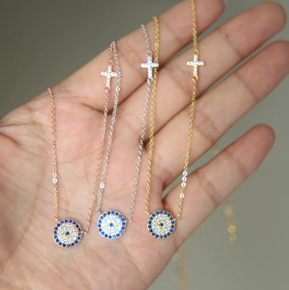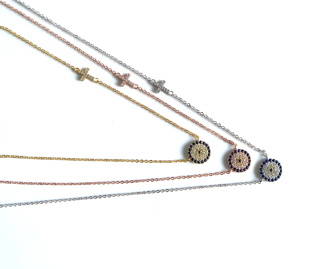 Be the first to review “2017 high quality 3 color 100% 925 sterling silver dainty thin chain delicate evil eye cross connector silver necklace for lady”