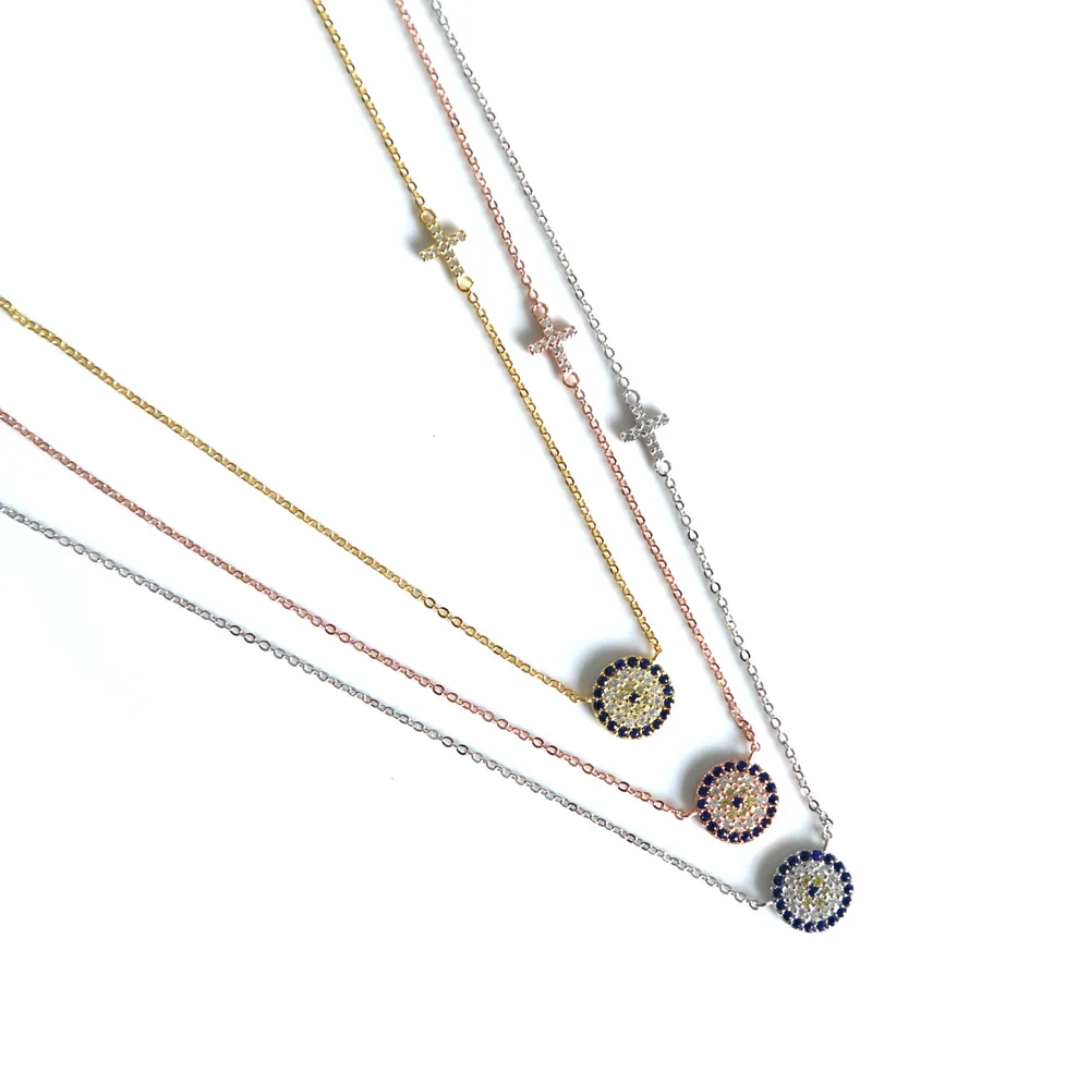 2017 high quality 3 color 100% 925 sterling silver dainty thin chain delicate evil eye cross connector silver necklace for lady