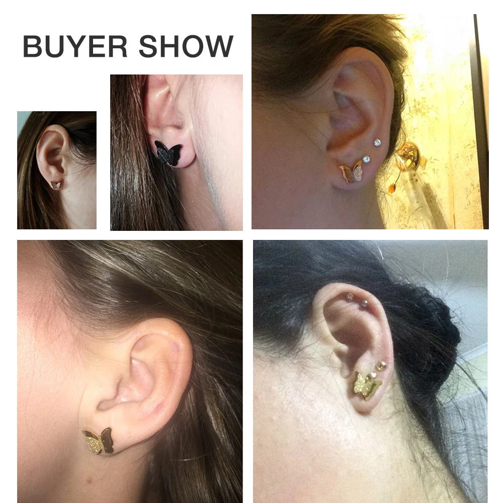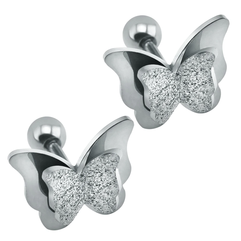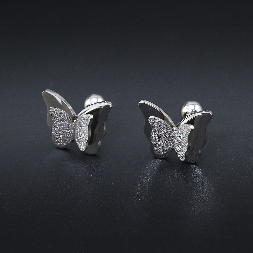 2019 New Butterfly Earrings Rose Gold Color Stainless Steel Stud Earrings for Women Child Frosted Butterfly Cartilage Ear Studs