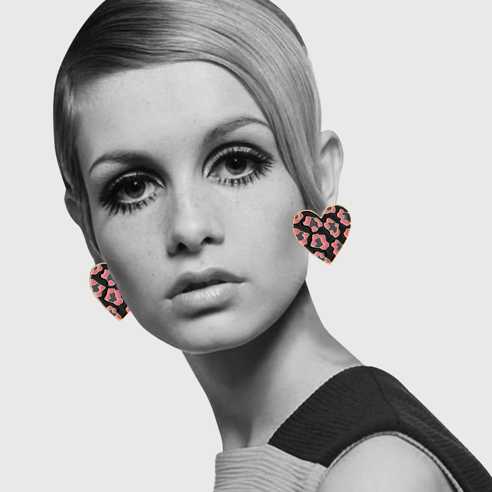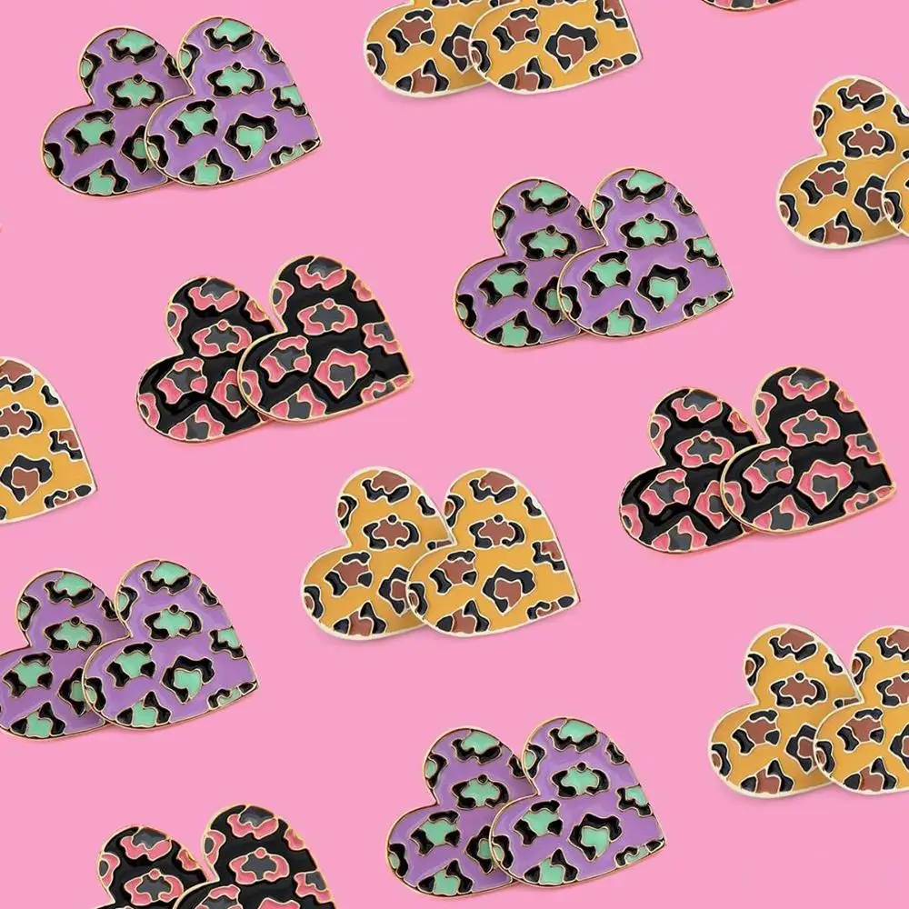2020 Fashion Jewelry Female Sexy Cute Statement Earring Eco-friendly Enamel Leopard Solid Love Heart Stud Earings For Women