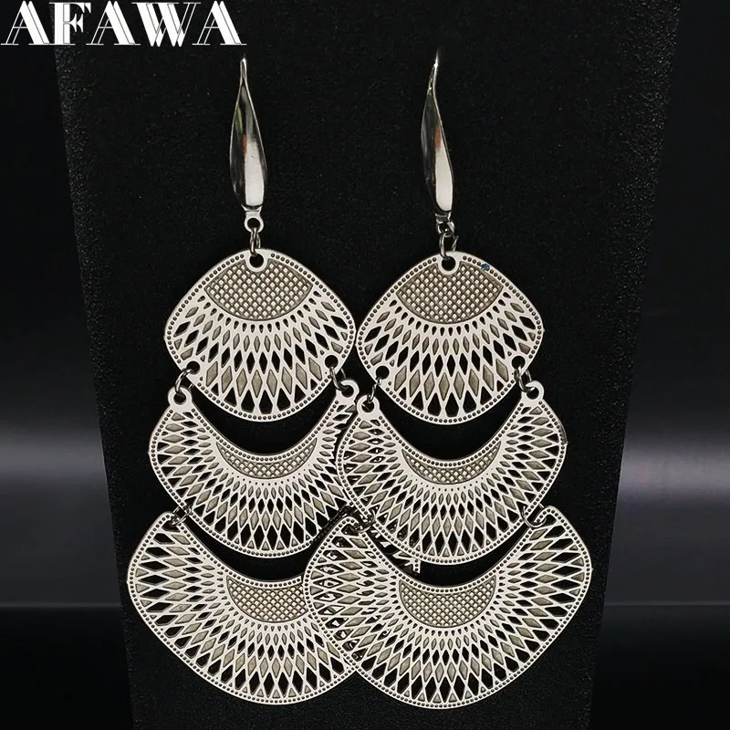 2019 Fashion Silver Color Stainless Steel Statement Earrings for Women Big Long Ethnic Earrings Jewelry aretes de mujer