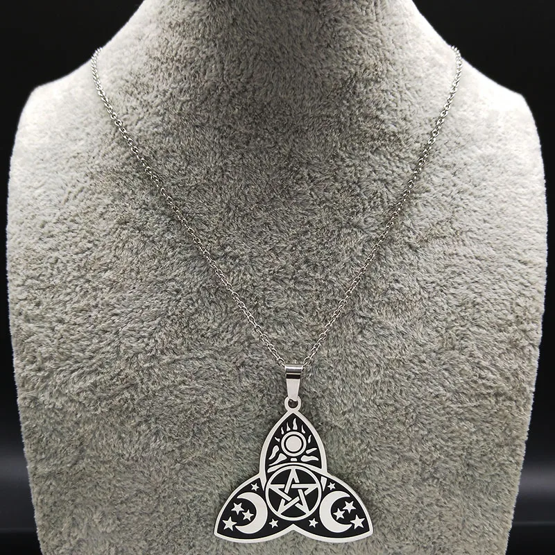 2019 Fashion Wicca Sun Star Moon Stainless Steel Necklaces for Women Silver Color Chain Necklace Jewellery collier femme