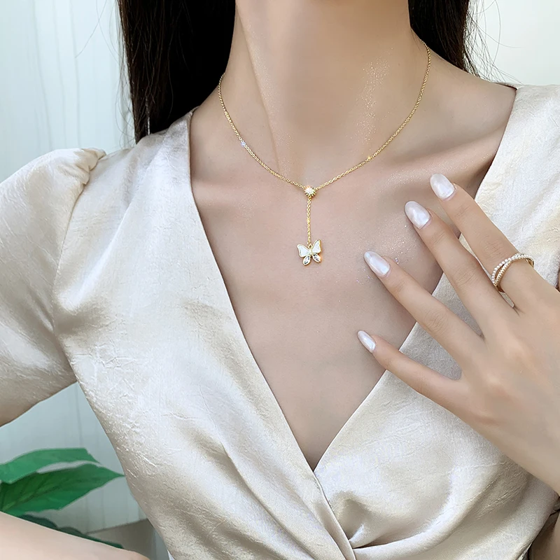 2020 Korea Hot Selling Fashion Jewelry Small and Cute Shell Butterfly Necklace Elegant Female Clavicle Necklace