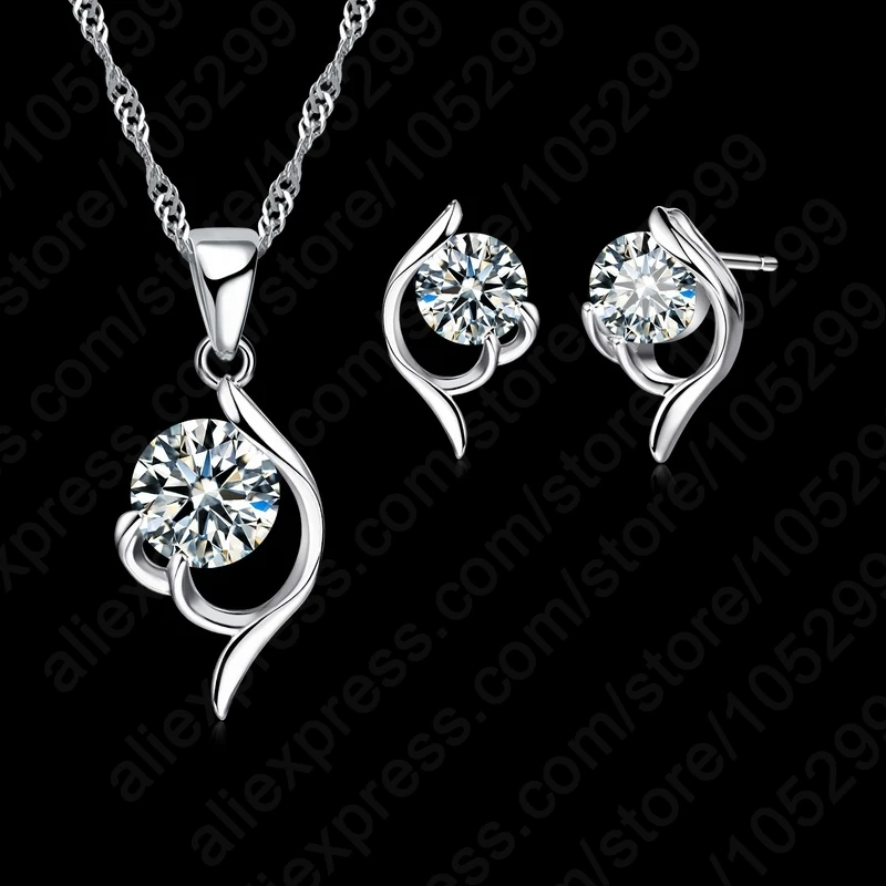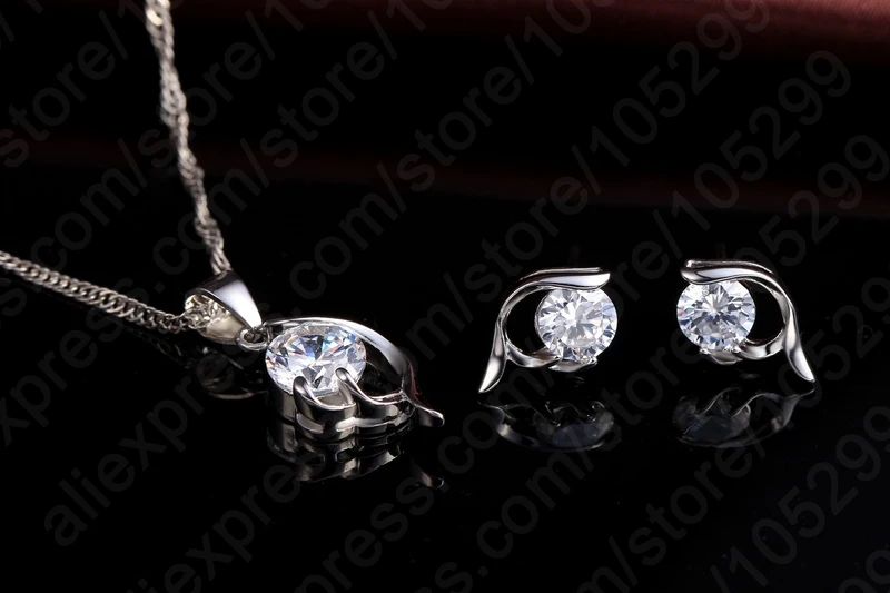 2020 Latest Shinning Woman Gift 925 Sterling Silver Jewelry CZ Pendant Necklace Earring Lady Wedding Engagement Set With Box