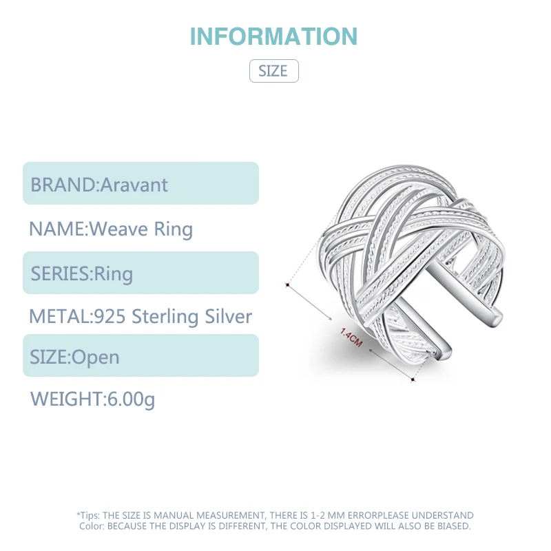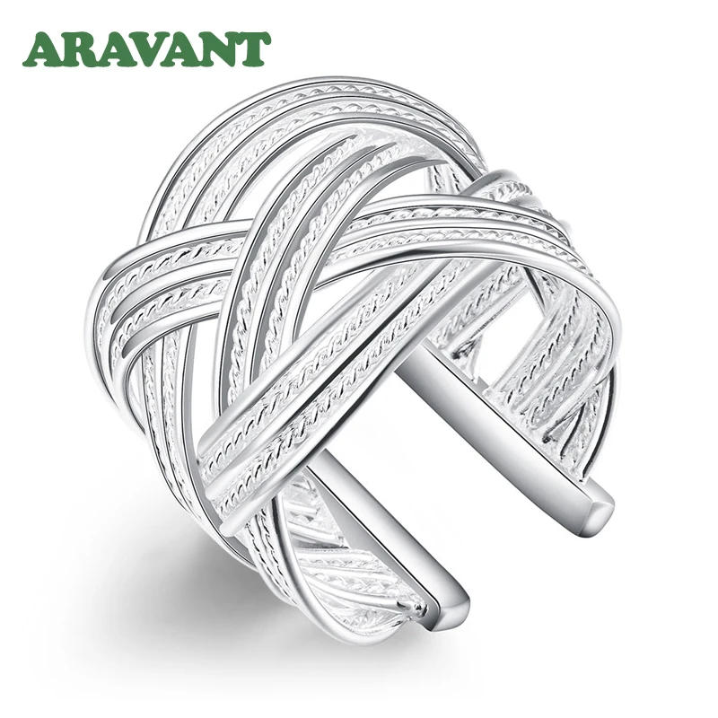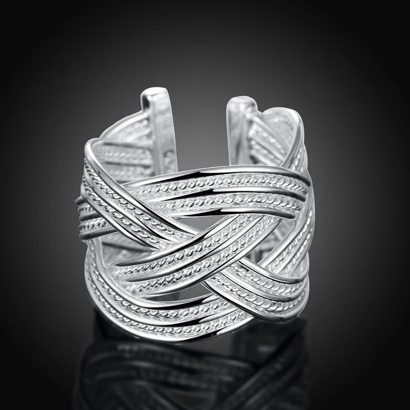 2020 New 925 Silver Weave Open Adjustable Ring For Women Fashion Jewelry