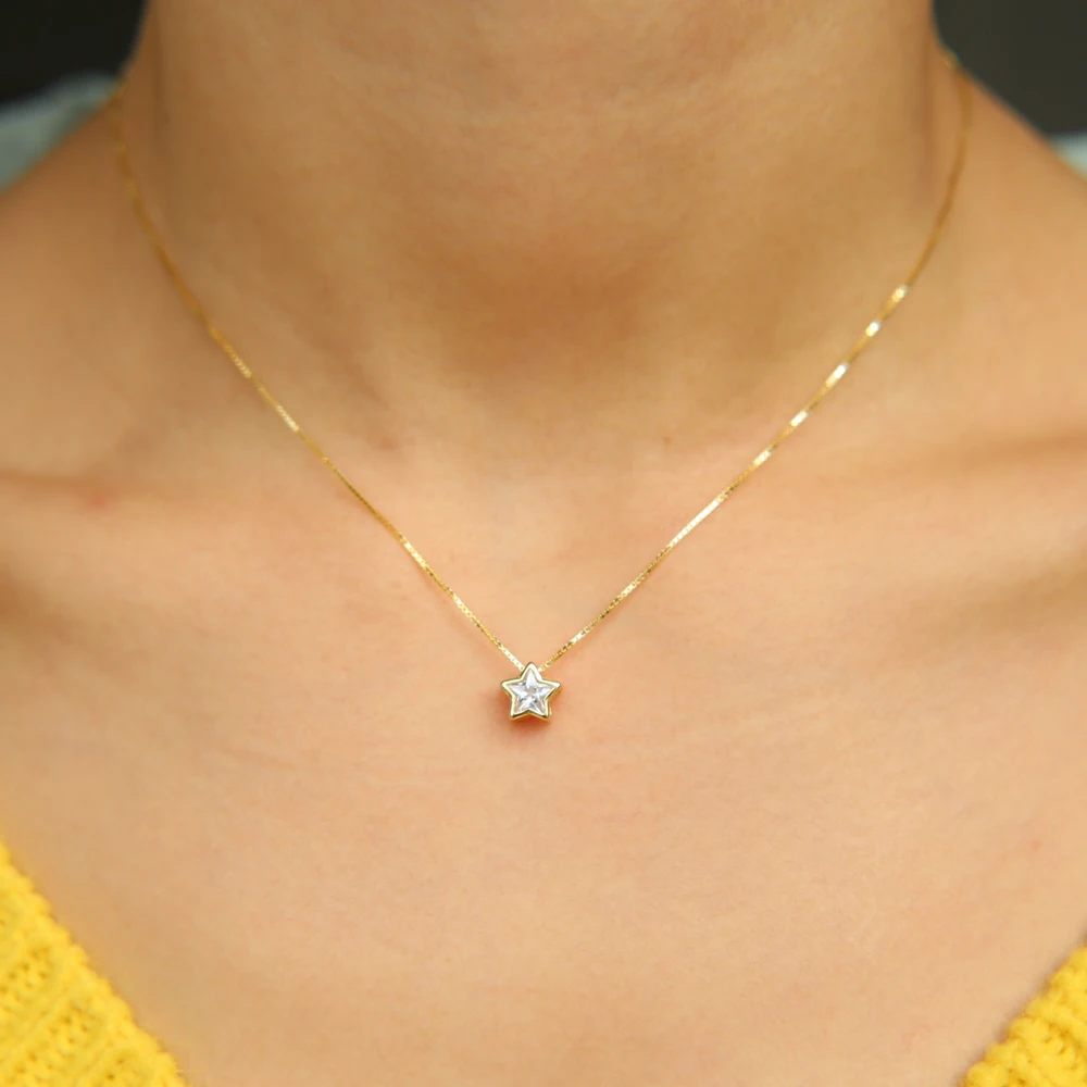 925 sterling silver Cute lucky cz Star charm Pendant Tiny Mini Charm Chain Necklace Mujer Collier Torques For Femme Best Friend