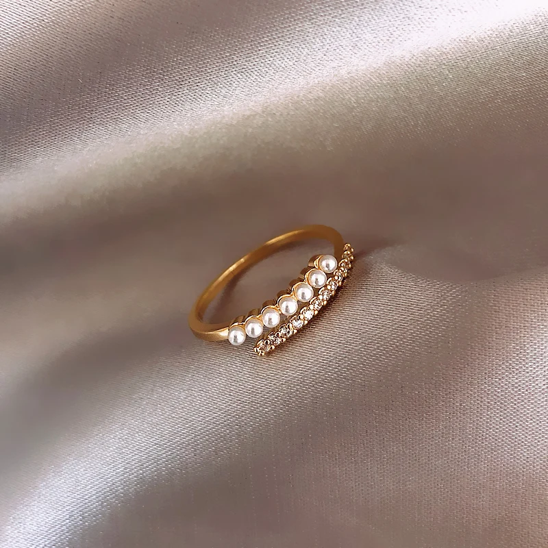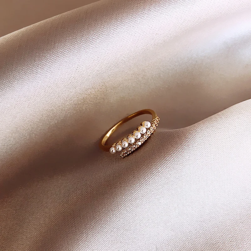 2020 new classic geometric metal pearl ring Korean female jewelry fashion student opening ring Party Gift Ring
