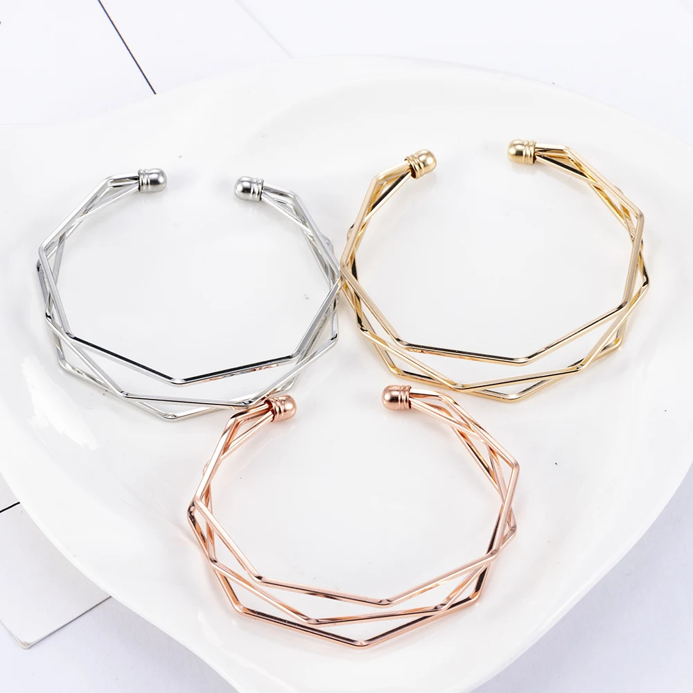 2020 NEW Gold Metal Alloy Arrow Link Chain Twist Bangle New Three Layer Romantic Open Cuff Bangles/Bracelet Set For Women
