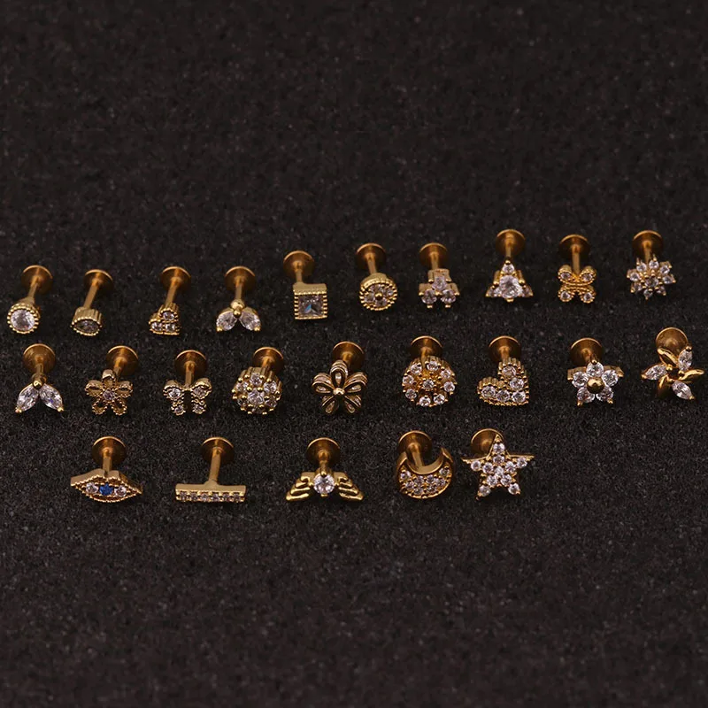 2pcs 3/4/5mm Crystal Zircon Ear Studs Earrings For Women/Men Stainless steel Cartilage Helix Ear Bone Nail Piercing Ear Jewelry