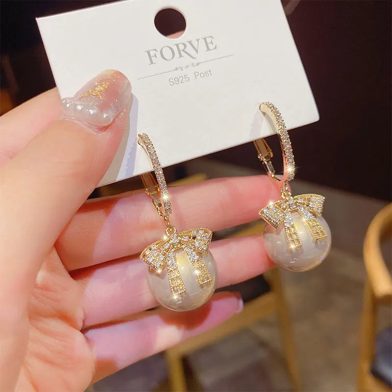 Luxury Female Big White Round Hoop Earrings Fashion Gold Color Color Wedding Earrings Double Zircon Stone Earrings For Women
