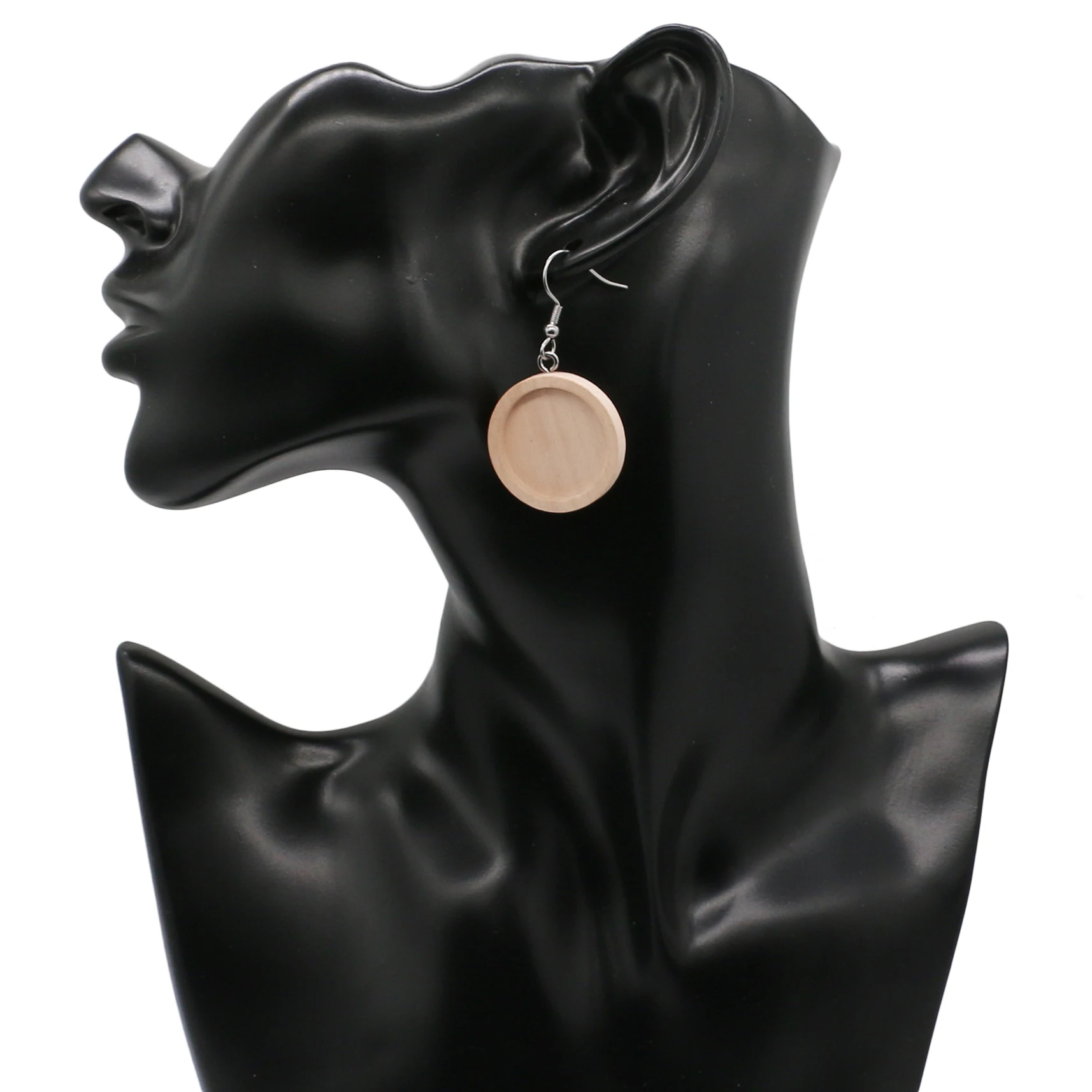 Name: 20pcs/lot Brown Fit 20mm Wood Cabochon Earring Base Settings Blank Stainless Steel Hooks Diy Accessories for Making Earrings