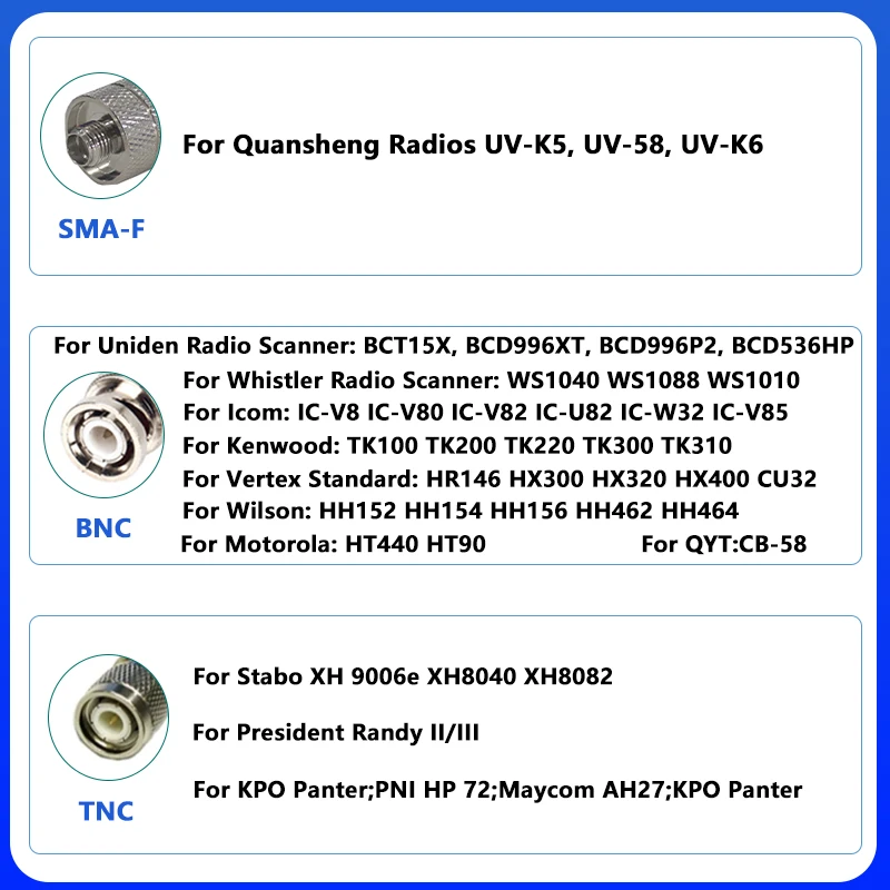 Connector: BNC/TNC/SMA-Female