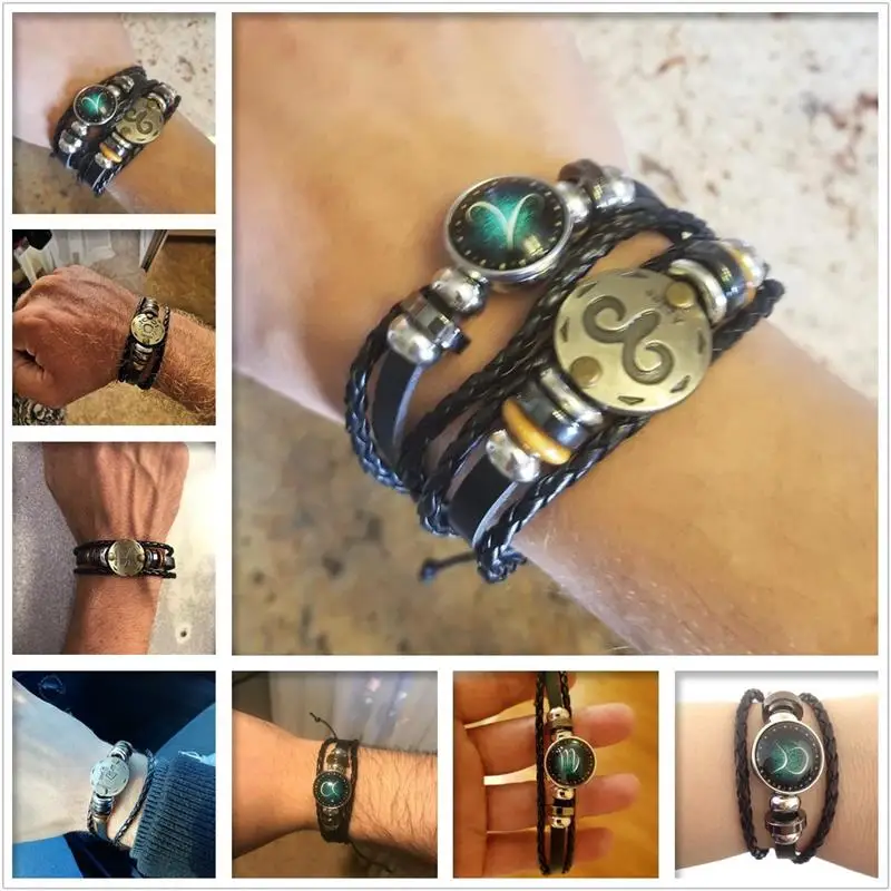 2pcs/set 12 Constellation Bracelets Luminous Charm Leather Bracelet Zodiac Horoscope Braided Bangle Men Women Jewelry Wrist Gift