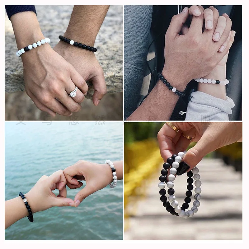2Pcs/set Couple Distance Beaded Bracelet Natural Stone Strand Bracelets Homme Charm Yoga Jewelry Gifts for Women Men Best Friend