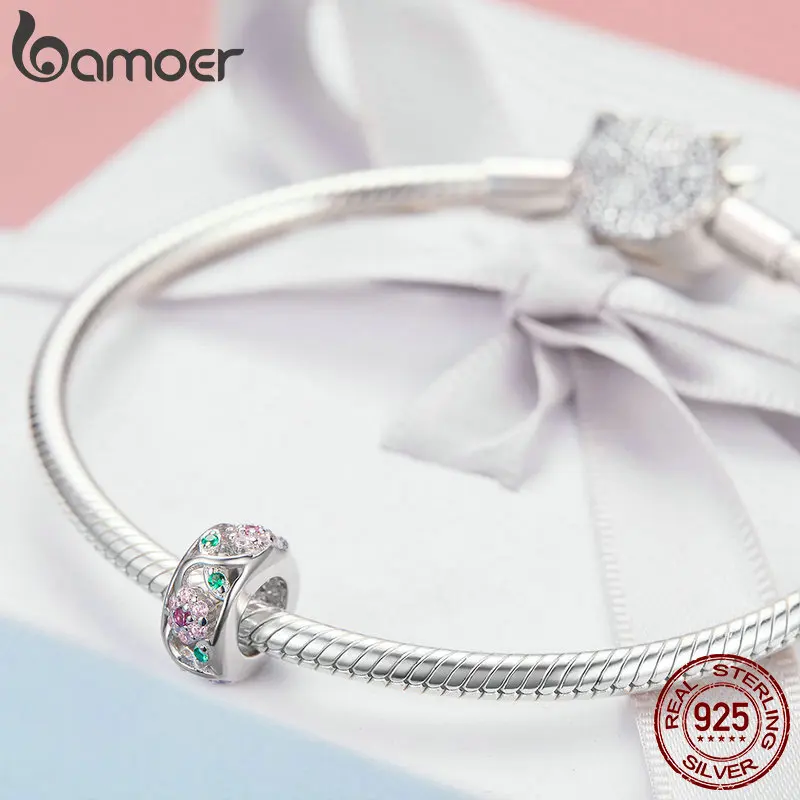BAMOER 925 Sterling Silver Pink Crystal Wedding Female Rings for Women Simple Geometric Ring Sterling Silver Jewelry SCR066