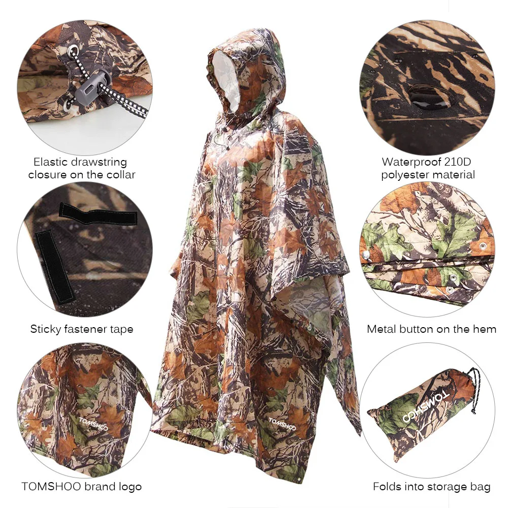 MULTIFUNCTION: The hooded poncho can be used as a raincoat, camping mat, canopy shelter to block sunshine.