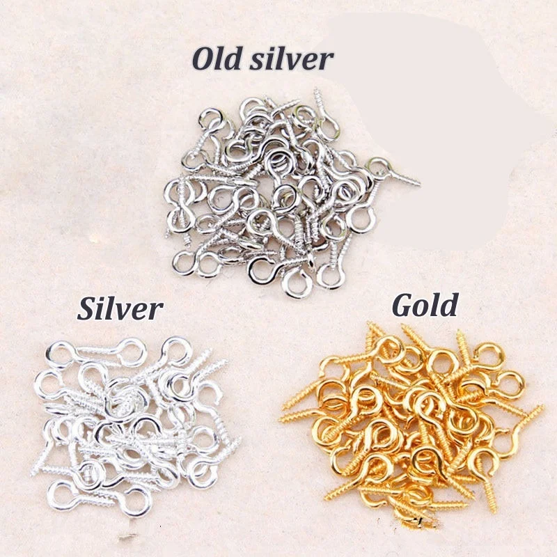 300Pcs Mini Screw Eye Pins for Jewelry Making Pearl Beads Screw Threaded Hooks Eyelets Clasps Findings for Bracelet DIY Earrings