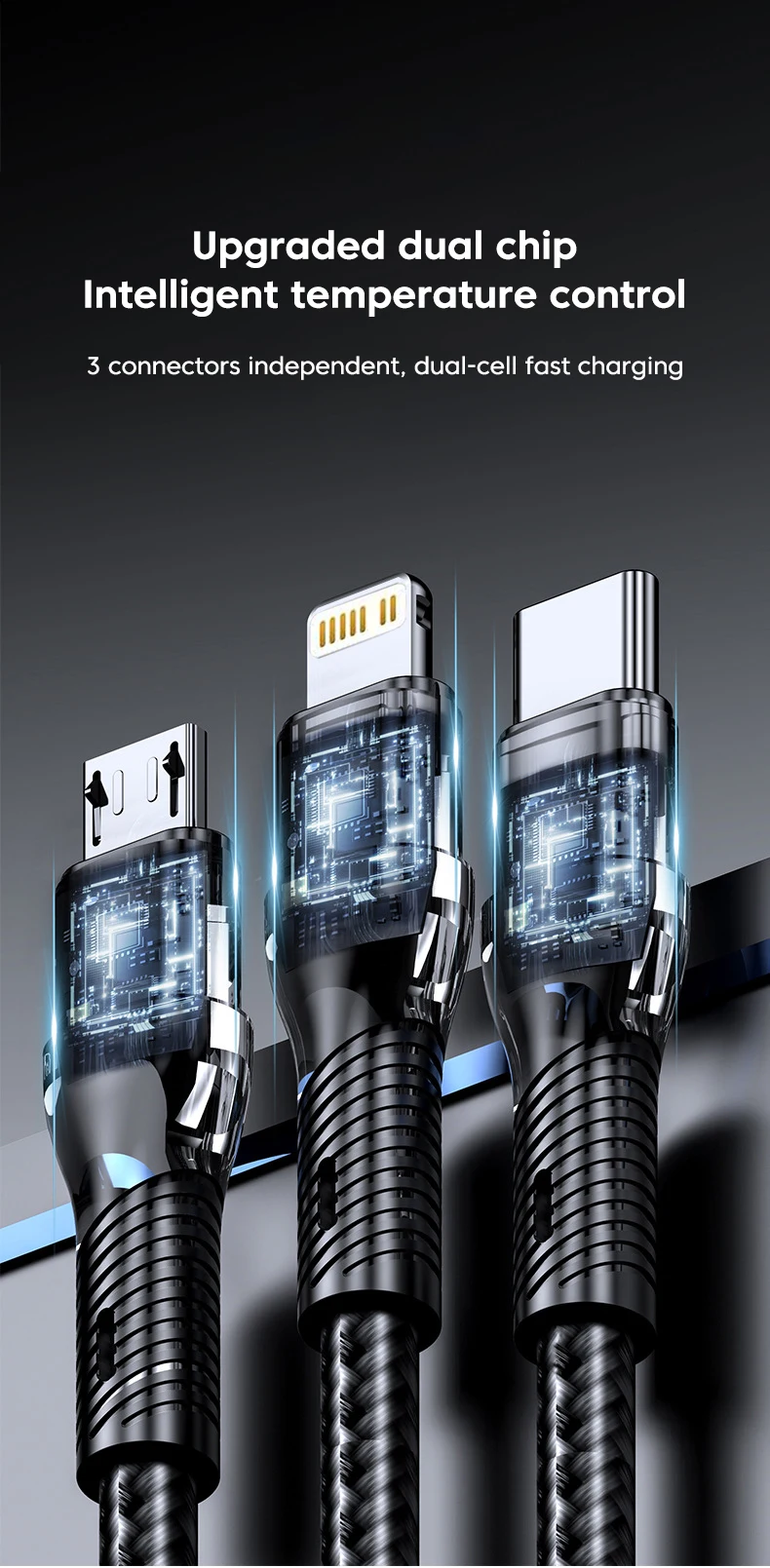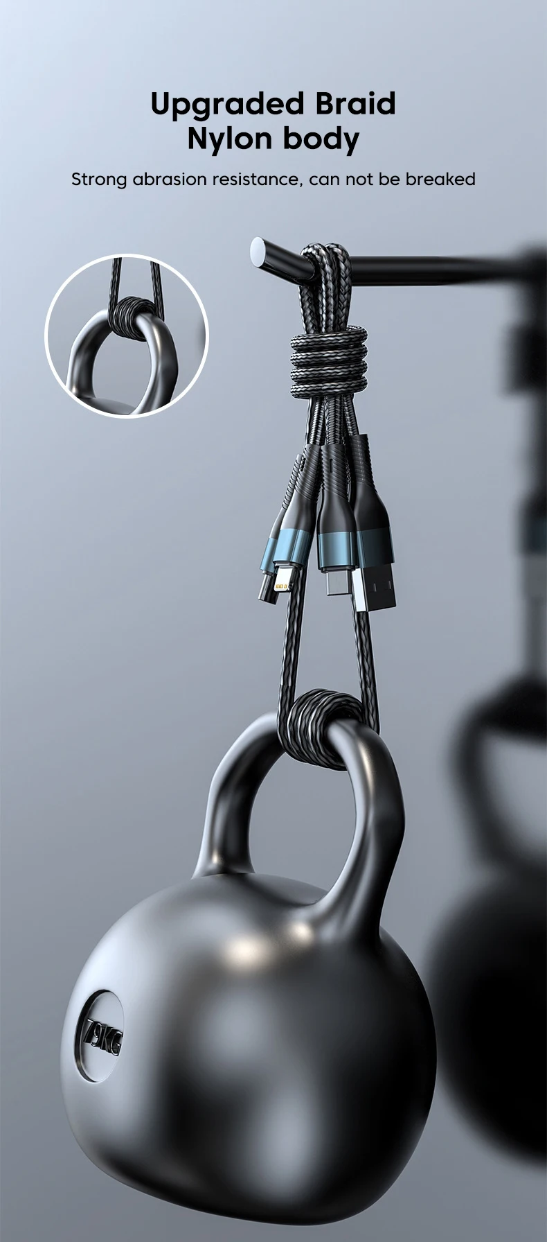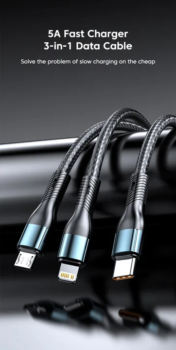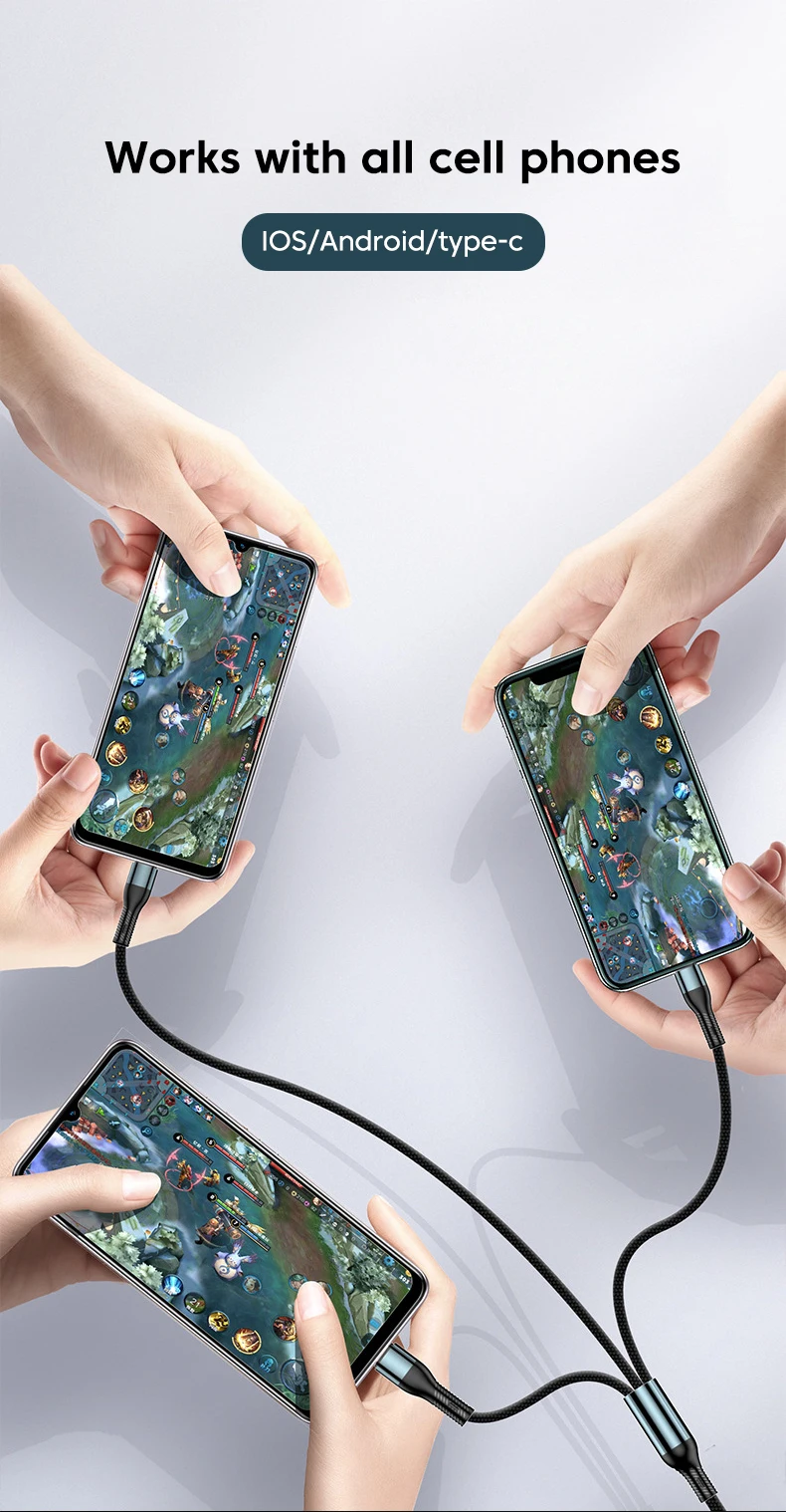 Eaget 3In1 120W Fast Charging Cable Cord For iPhone Android USB Type C Charger Cable Multi Port Multiple Usb Charging Wire Line