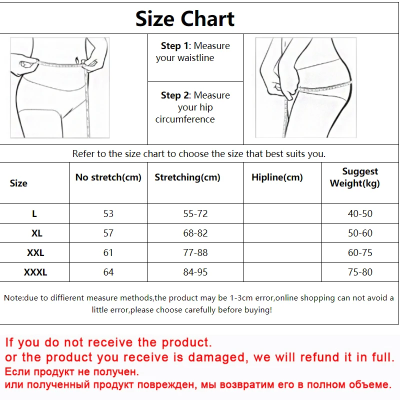 | Size | No stretch(cm) | Stretching(cm) | Hipline(cm) | Suggest Weight(kg) |