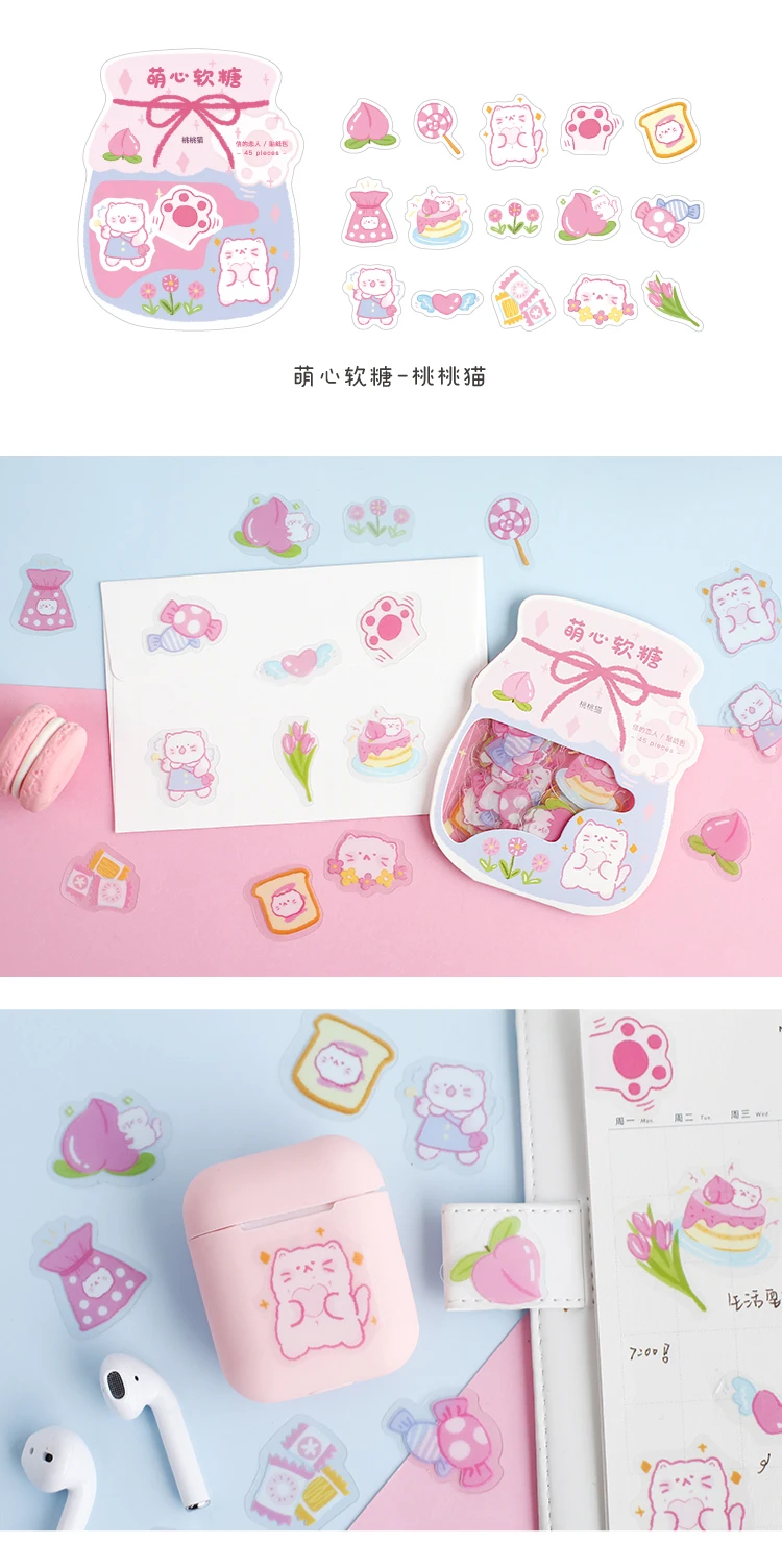 45 pcs/pack Cute Candy Series Journal Decorative Stickers Scrapbooking Stick Label Diary Stationery Album animal cat Stickers