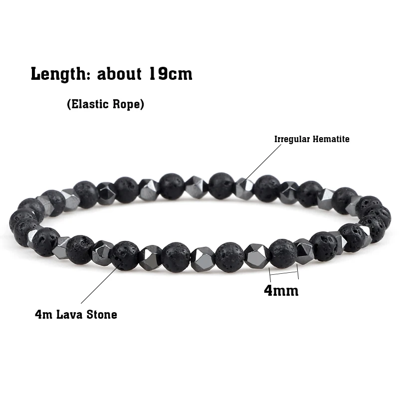 4mm Beads Bracelet Irregular Hematite Men Handmade Stretch Jewelry Black Lava Stone Charms Bracelets For Women Friendship Gifts