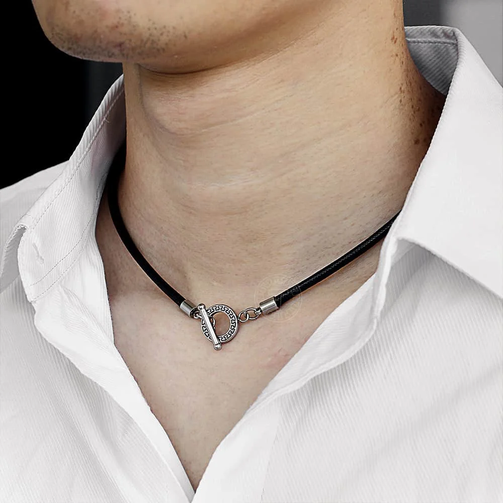 4mm Thin Simple Black Man Made Leather Necklace for Men Braided Rope Chocker Unique Toggle Clasp Fashion Gift Jewelry DN128